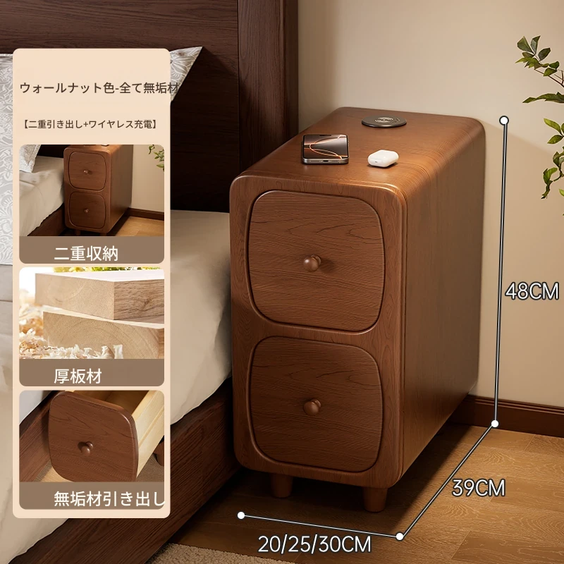 ウォールナットカラー『ツイン引き出し+ワイヤレス充電』⭐無垢材引き出し