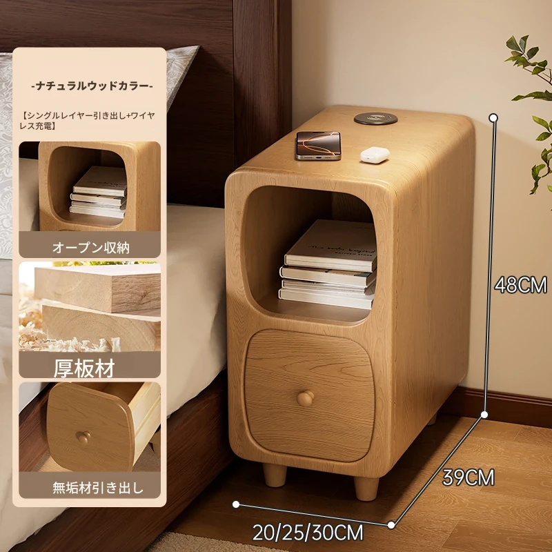ナチュラルカラー『シングル引き出し+ワイヤレス充電』⭐無垢材引き出し
