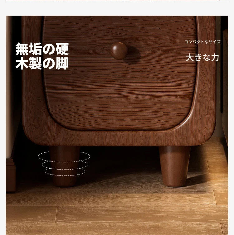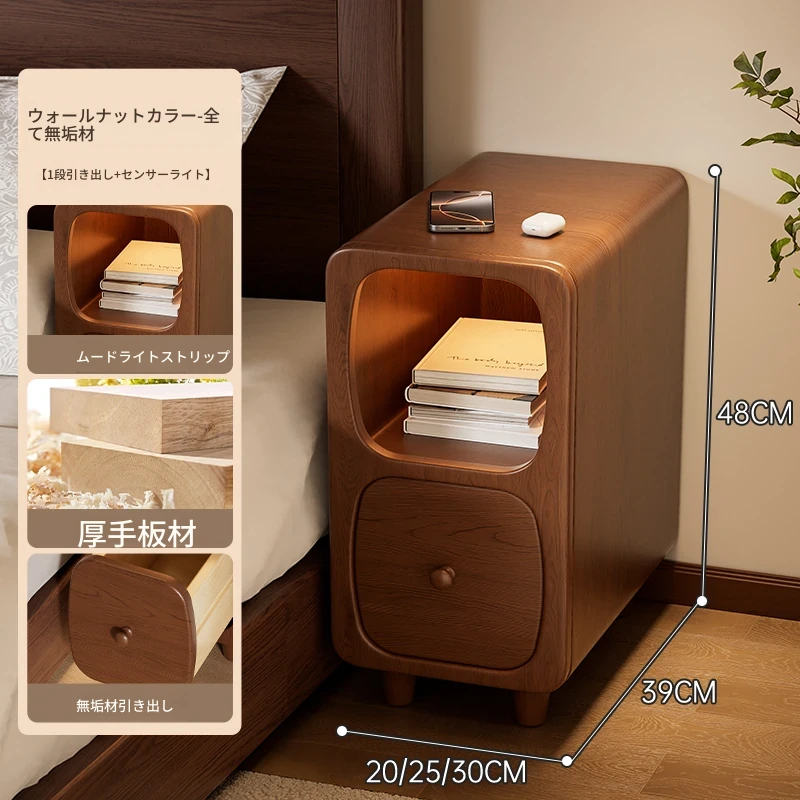 ウォールナットカラー『シングル引き出し+ワイヤレス充電+センサーライト』⭐無垢材引き出し
