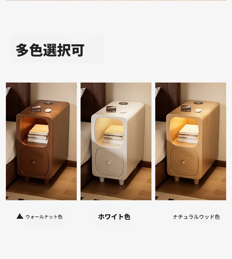 クラシックホワイト『ツイン引き出し+ワイヤレス充電』⭐無垢材引き出し