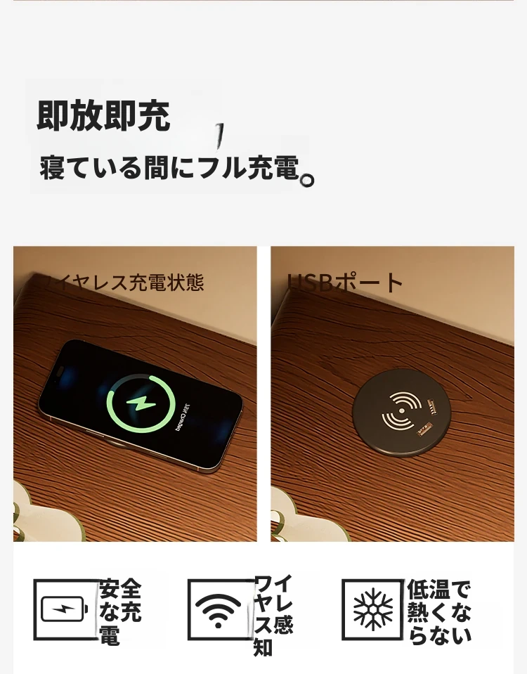 ナチュラルカラー『ツイン引き出し+ワイヤレス充電』⭐無垢材引き出し