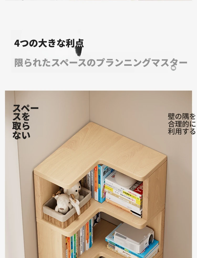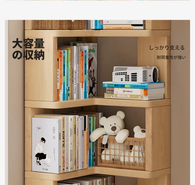 角型木製子供用本棚 - スペースを取らず、絵本やおもちゃをスッキリ収納!おしゃれで機能的な収納ラック。お部屋をスッキリさせる魅力的なアイテムです。