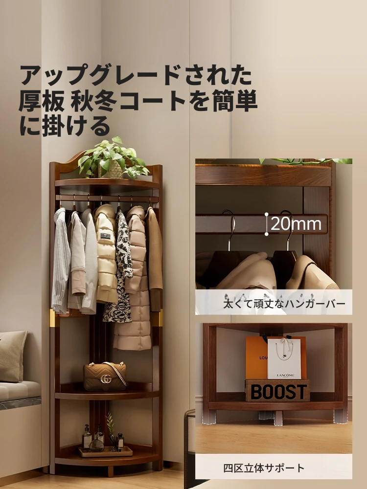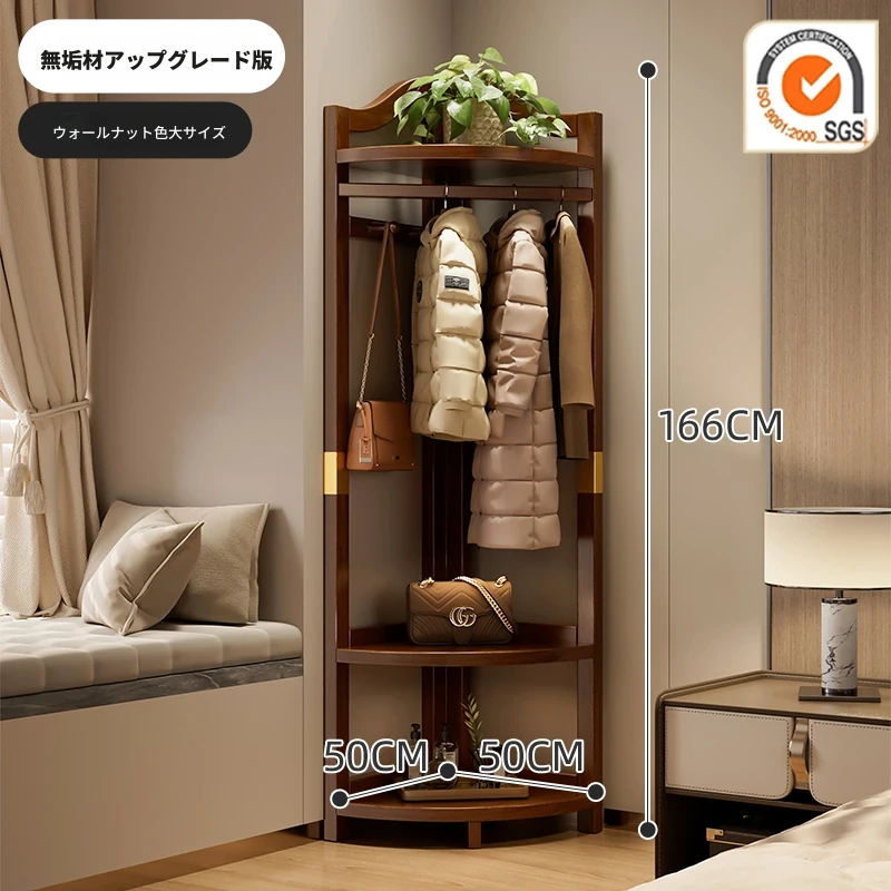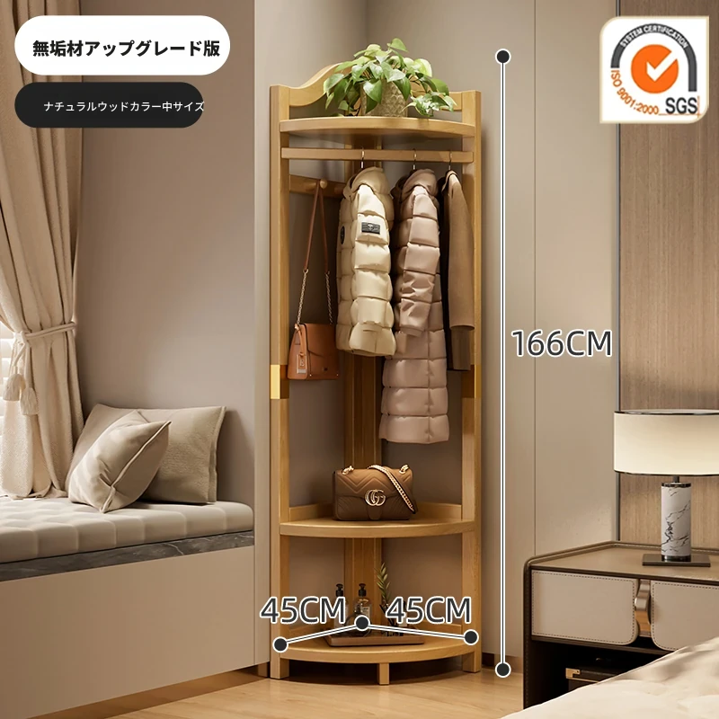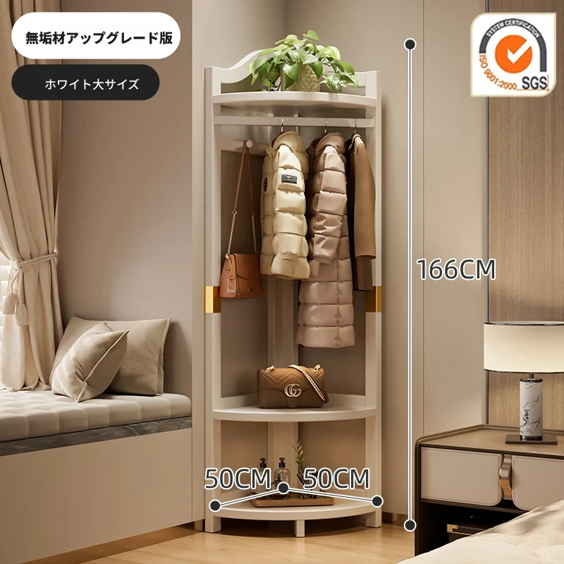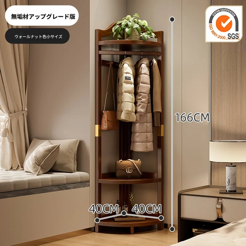 角にぴったり!省スペースで使える衣帽架 - 寝室や玄関に最適なスタイリッシュな掛ける収納ラック。ベッドサイドでも活躍する角棚で、整理整頓をお手伝いします。