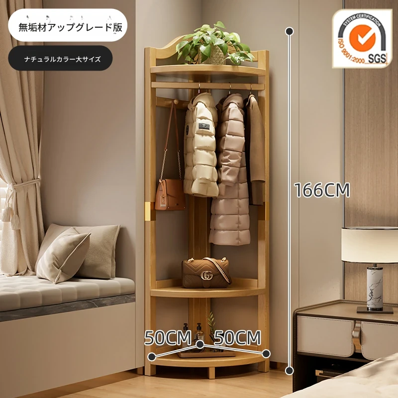 【全無垢】コーナーコートハンガー-ナチュラルカラー-大サイズ-50cm【コーナー収納 省スペース】