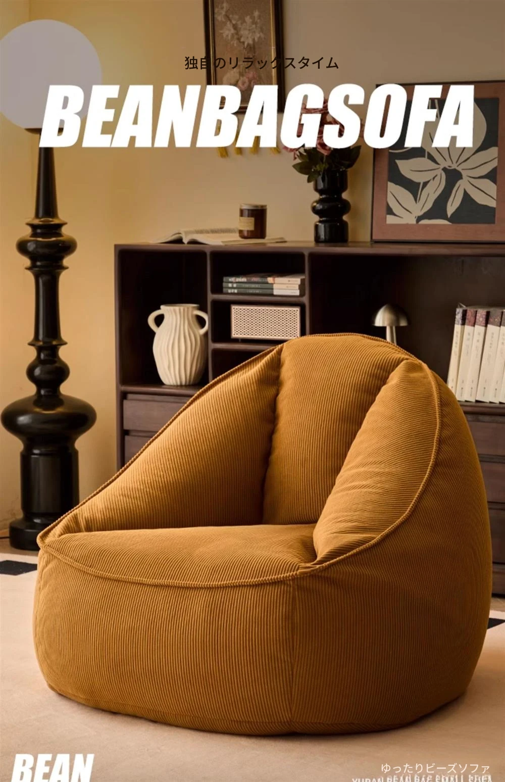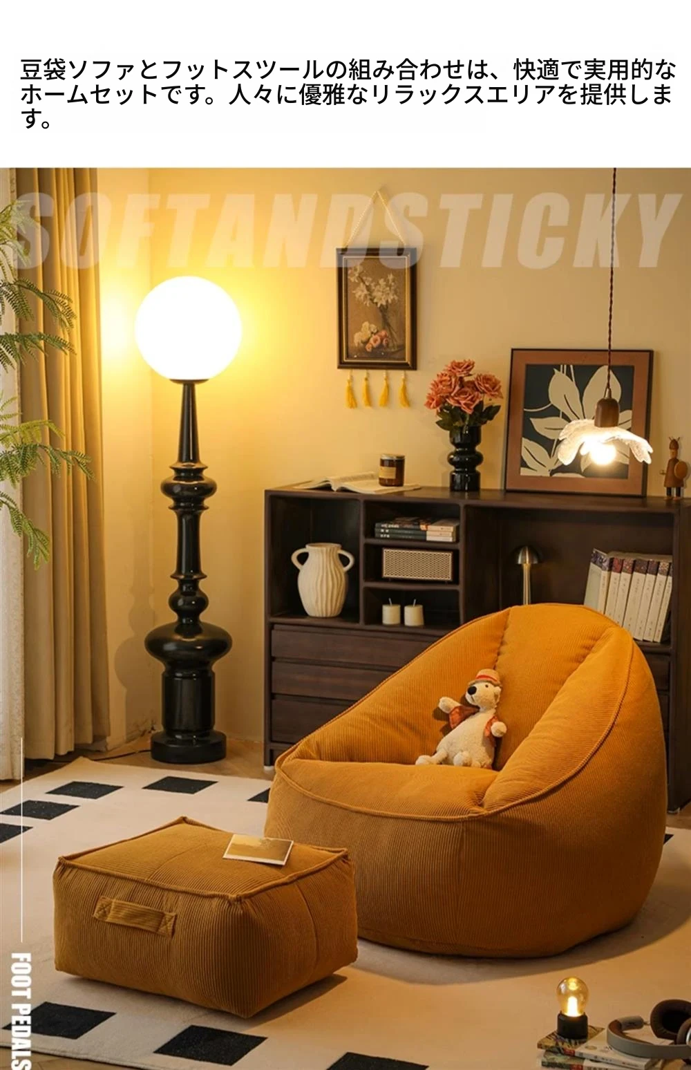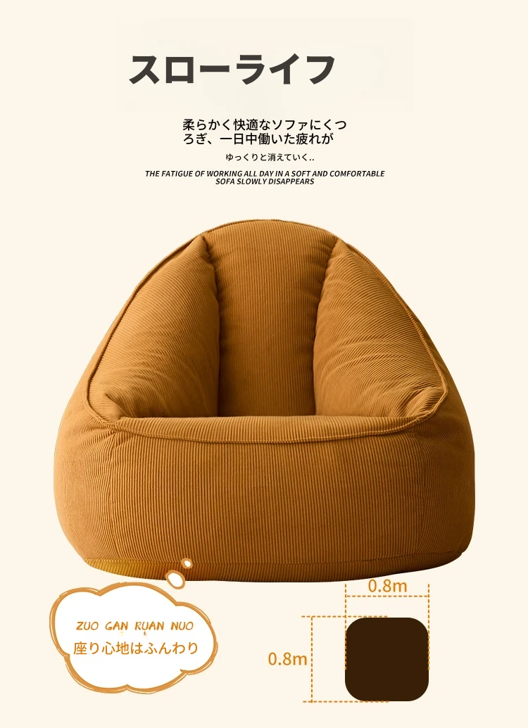 リラックスできる豆袋ソファ!寝転んでくつろげる、コンパクトな小型ソファ。寝室やバルコニー、窓際にも最適。長時間座っても快適で、あなたの癒しの空間を演出します。
