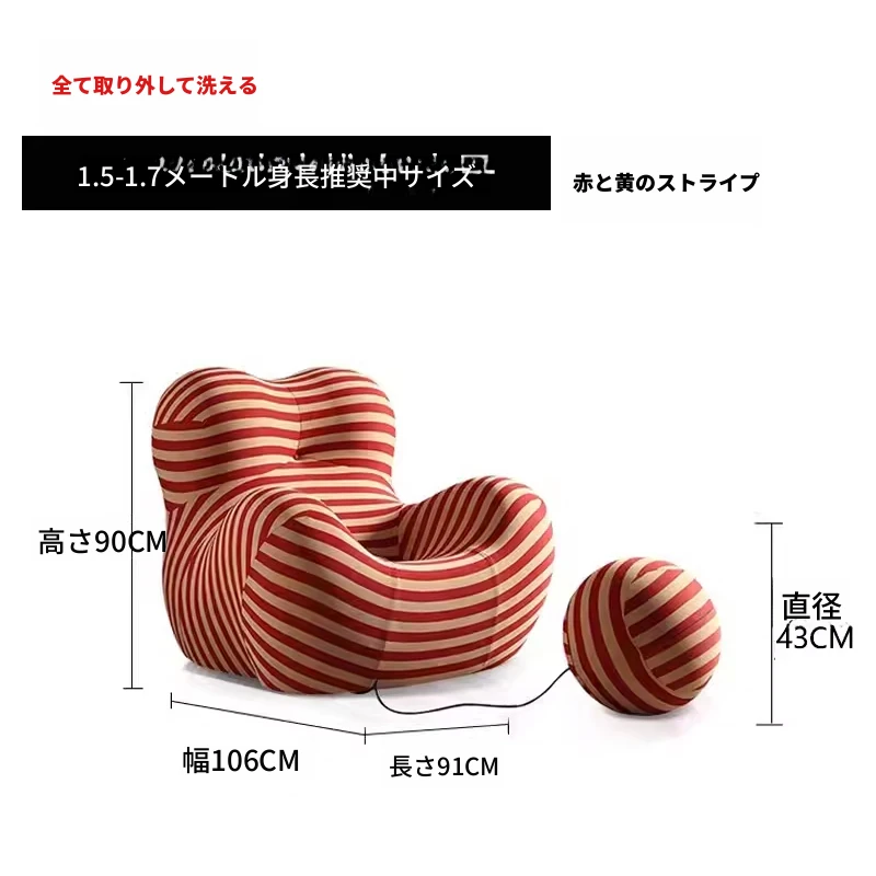 超大号120 【全て洗える】 レッドイエロー ストライプ + 同色ボール