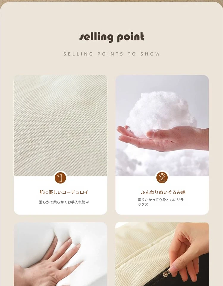 クリーム色コーデュロイ 大号【178CM*95CM】(抱き枕2つプレゼント)アップグレード版 厚手・長め