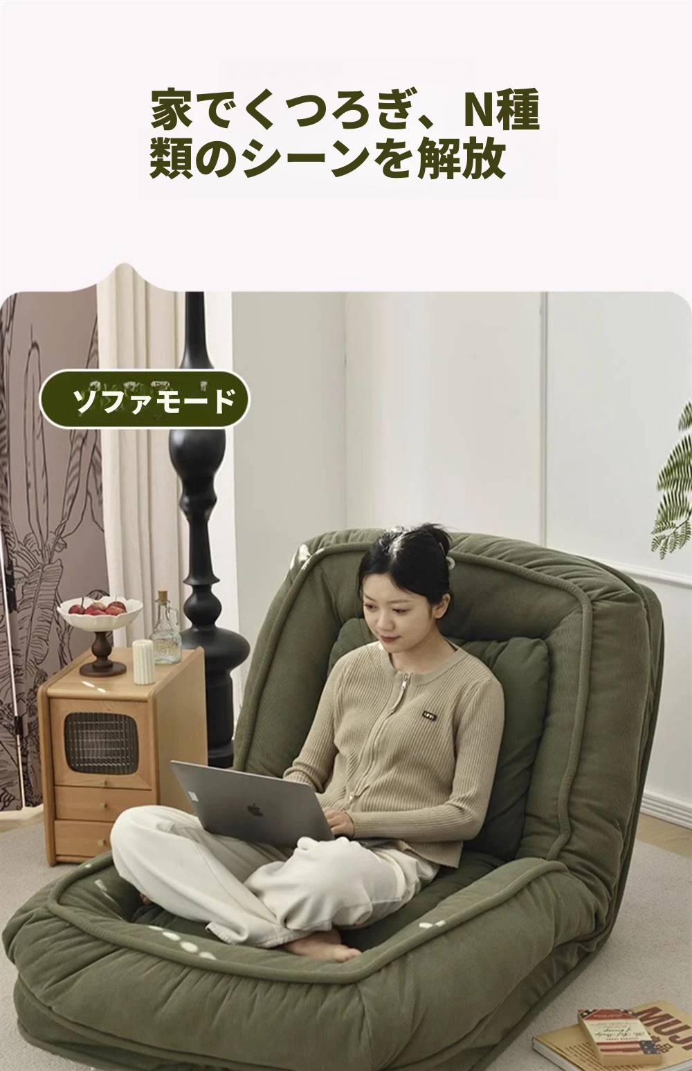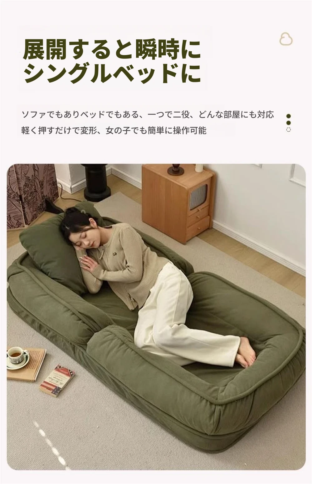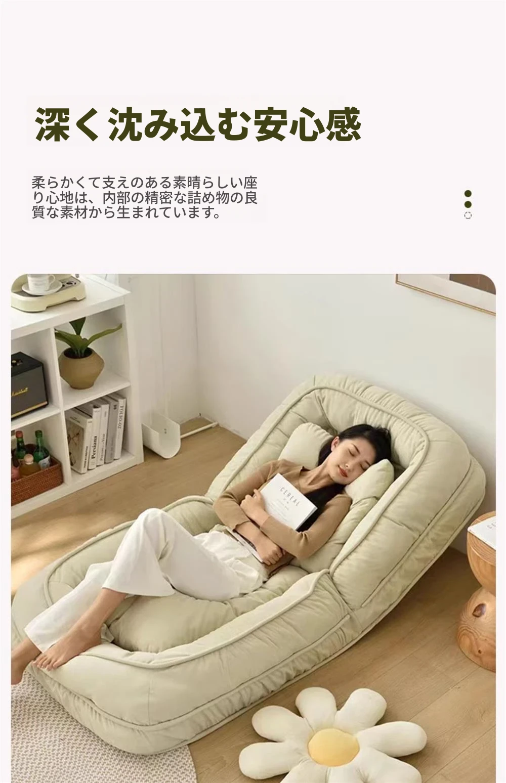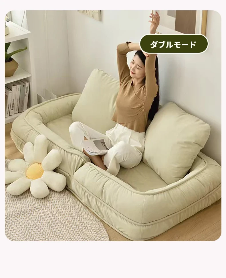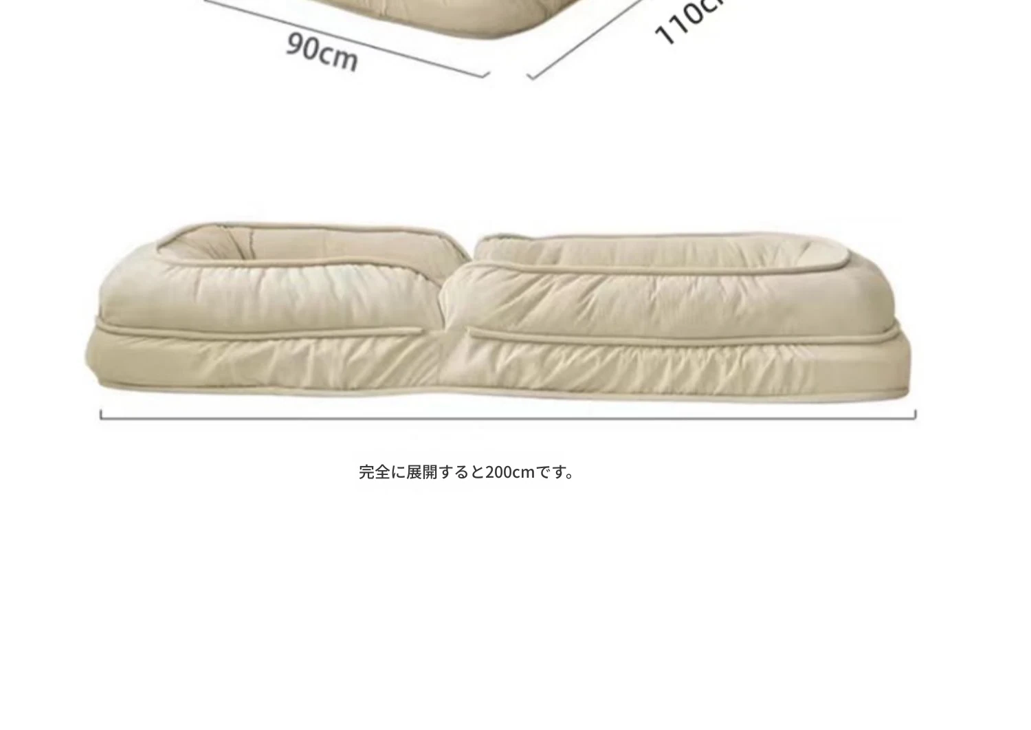 クリームホワイトテクノロジー布加大サイズ【展開90*200】クッション2個プレゼント