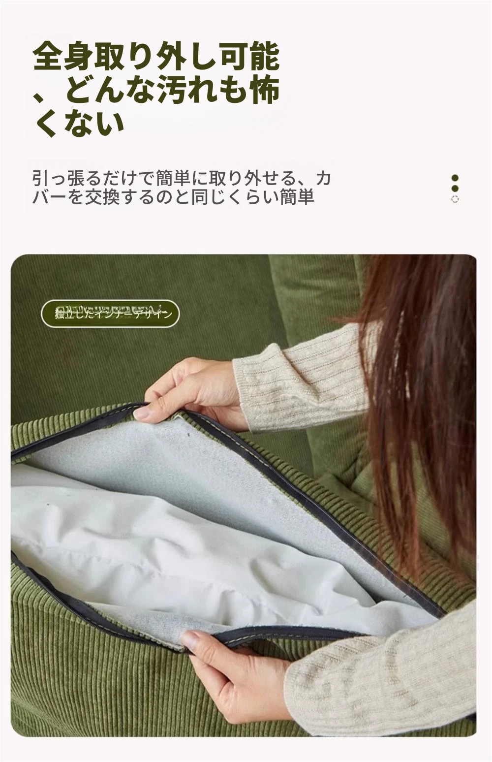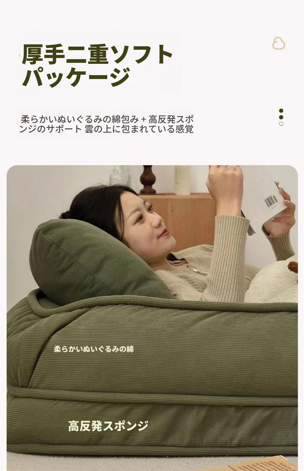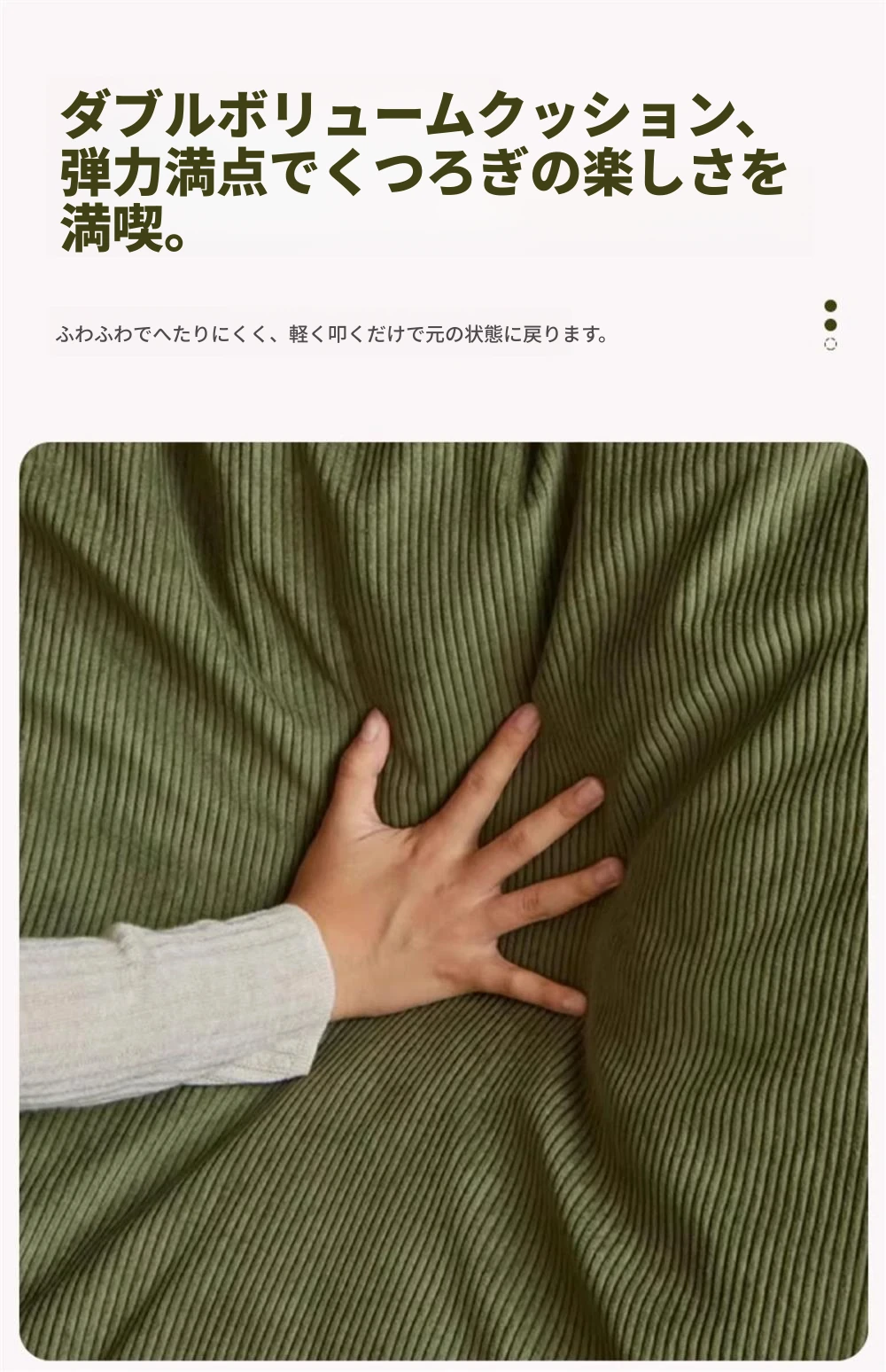 クリームホワイトコーデュロイ大サイズ1【展開90*177】クッション2個プレゼント
