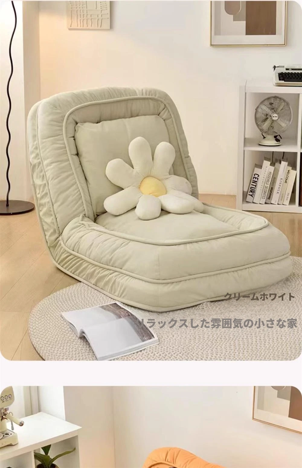 クリームホワイトテクノロジー布中サイズ【展開90*140】クッション2個プレゼント