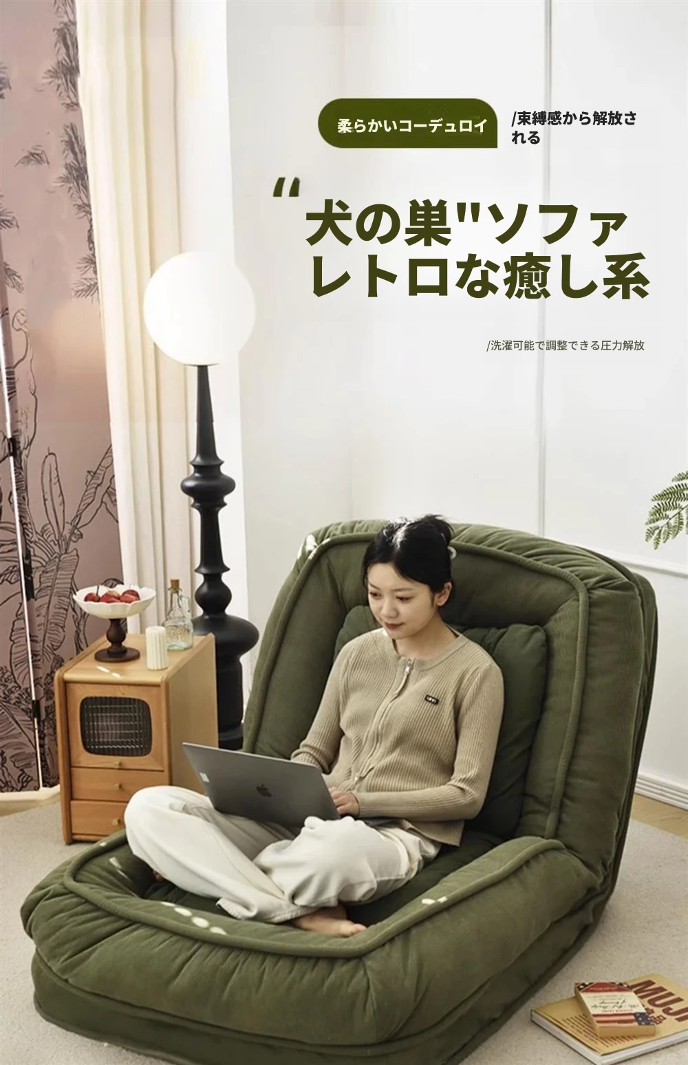 墨緑コーデュロイ大サイズ【展開90*177】クッション2個プレゼント