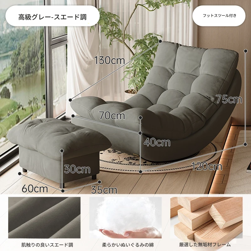 高級グレー+フットレスト丨スエード✨柔らかく快適【長時間座ってもへこまない+静音防滑】