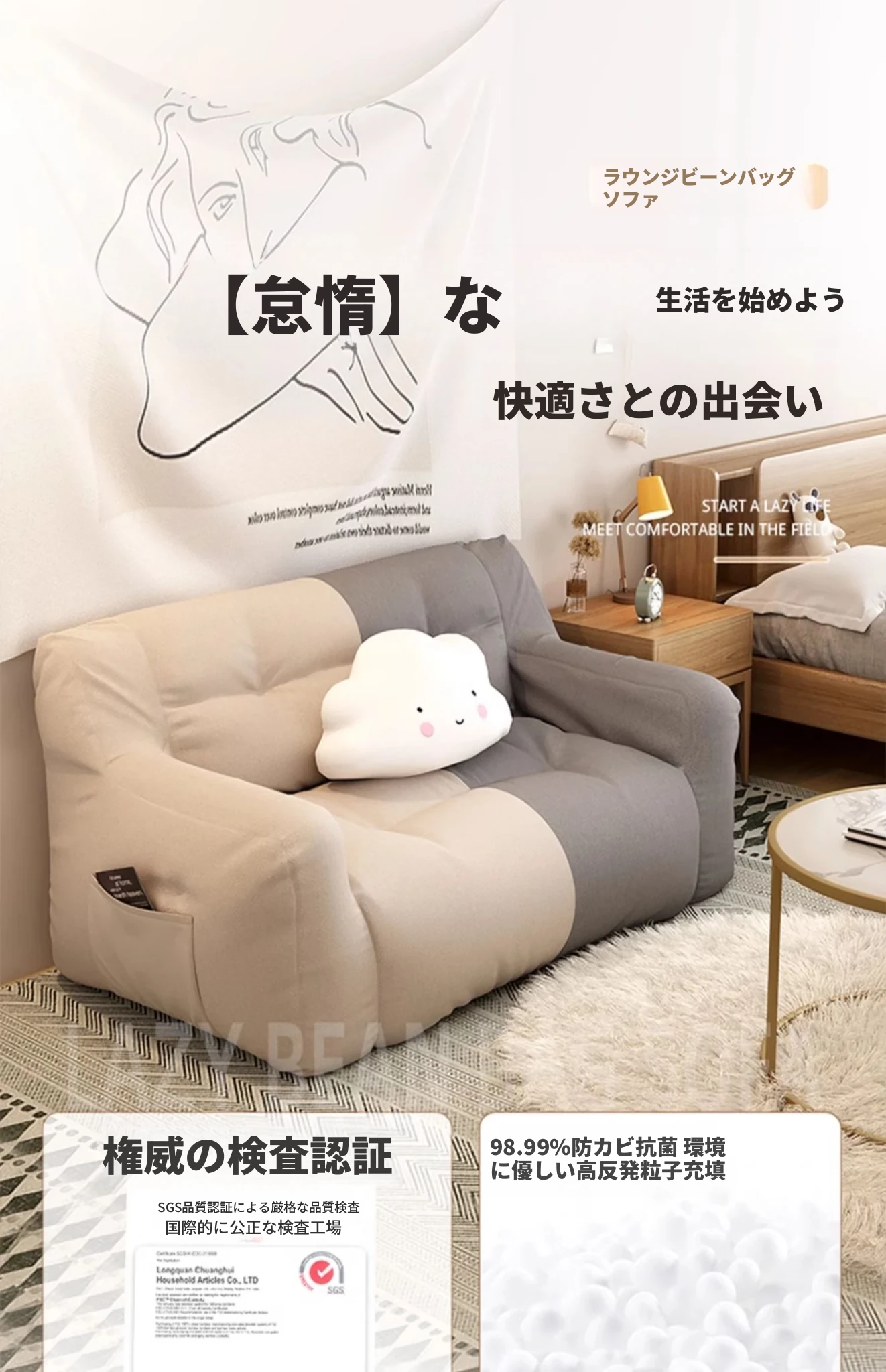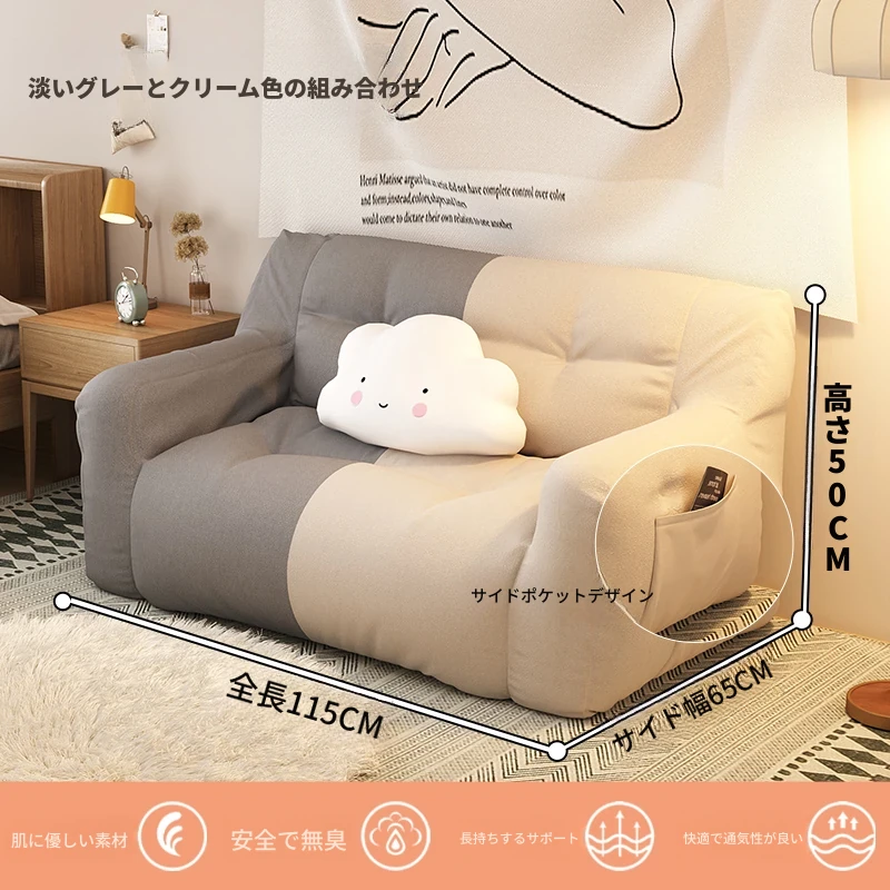 ダブルタイプ⭕ビッグサイズ--ライトグレーとベージュのコンビ【増量充填 長時間座ってもへこまない】