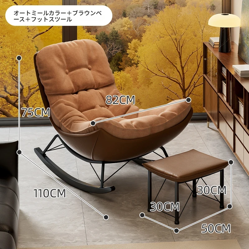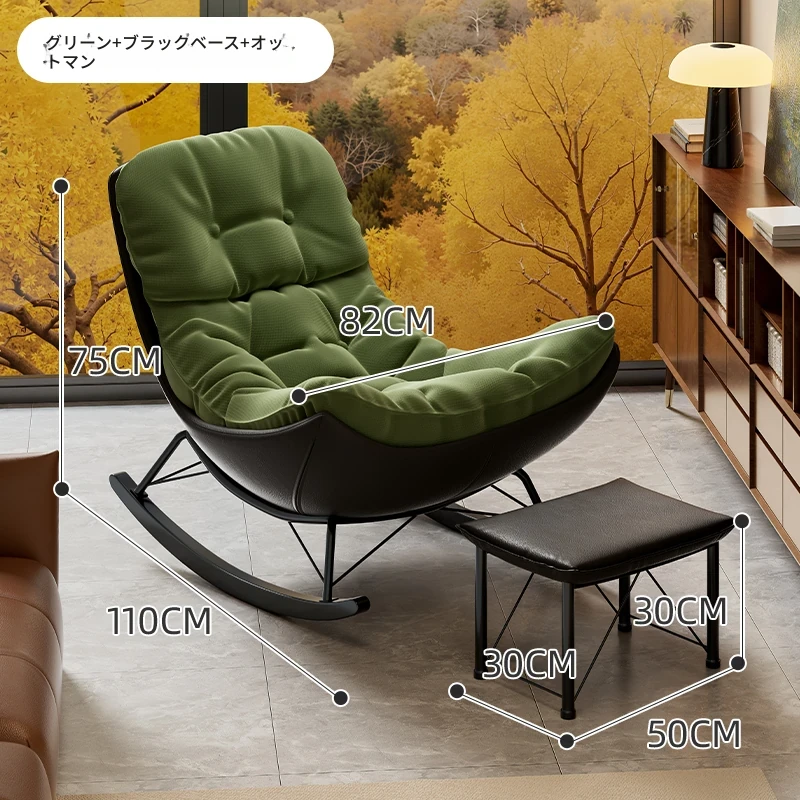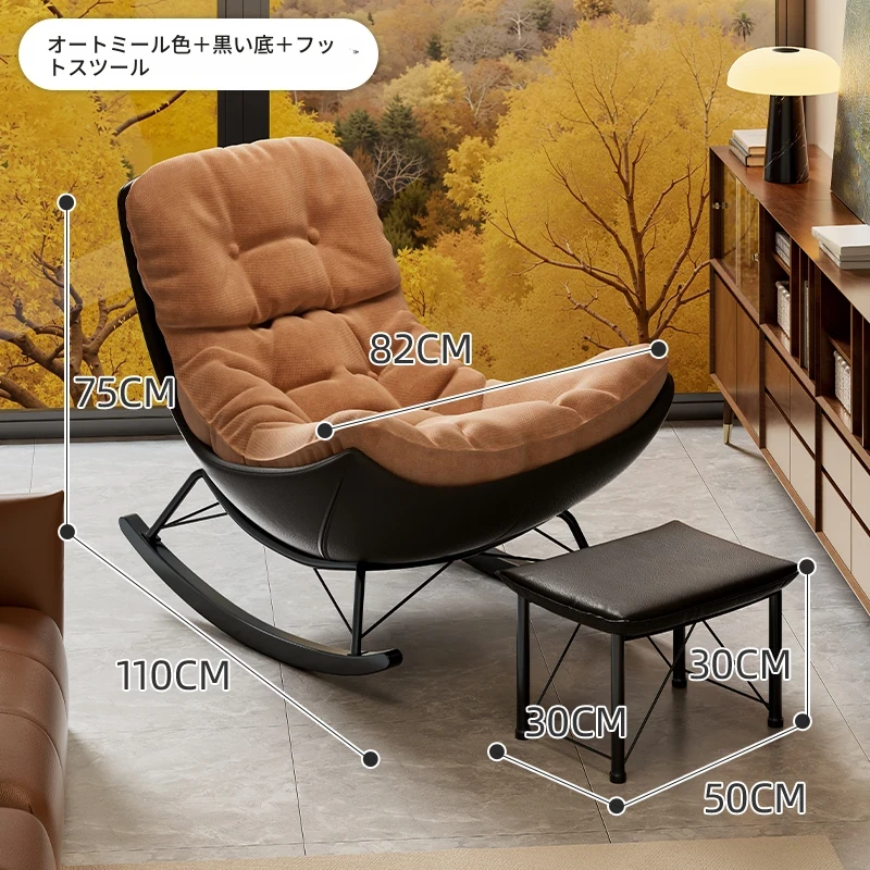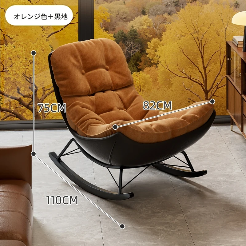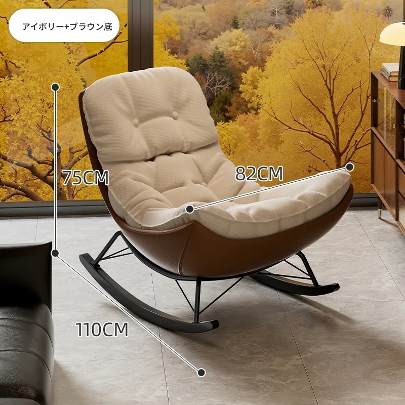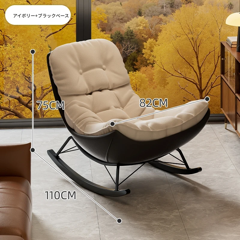 リラックスソファ 一人用 寝転びやすい シンプルデザイン 小型スペースに最適 ゆったり揺れるロッキングチェア バルコニーや家庭でのくつろぎタイムにぴったり!