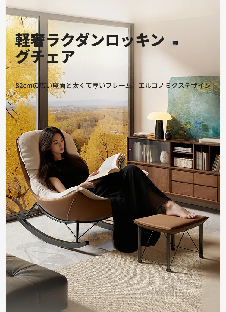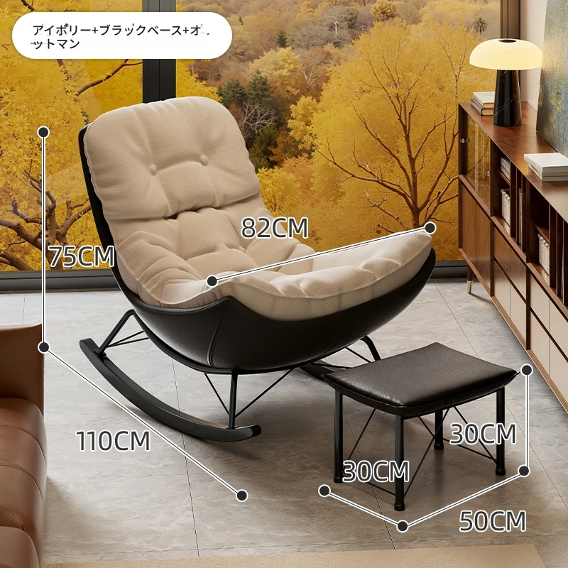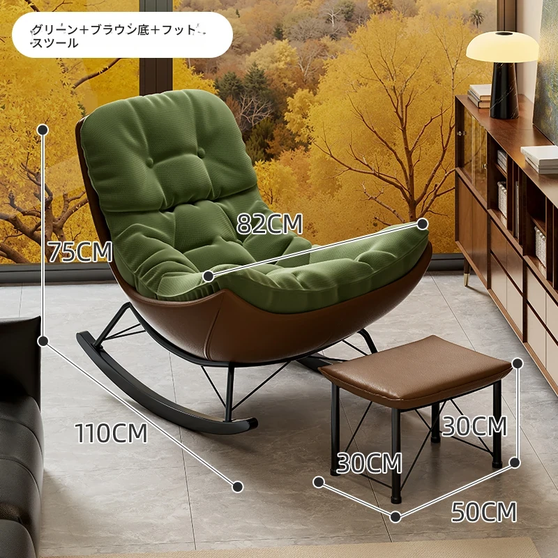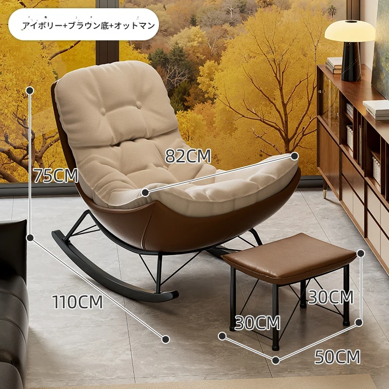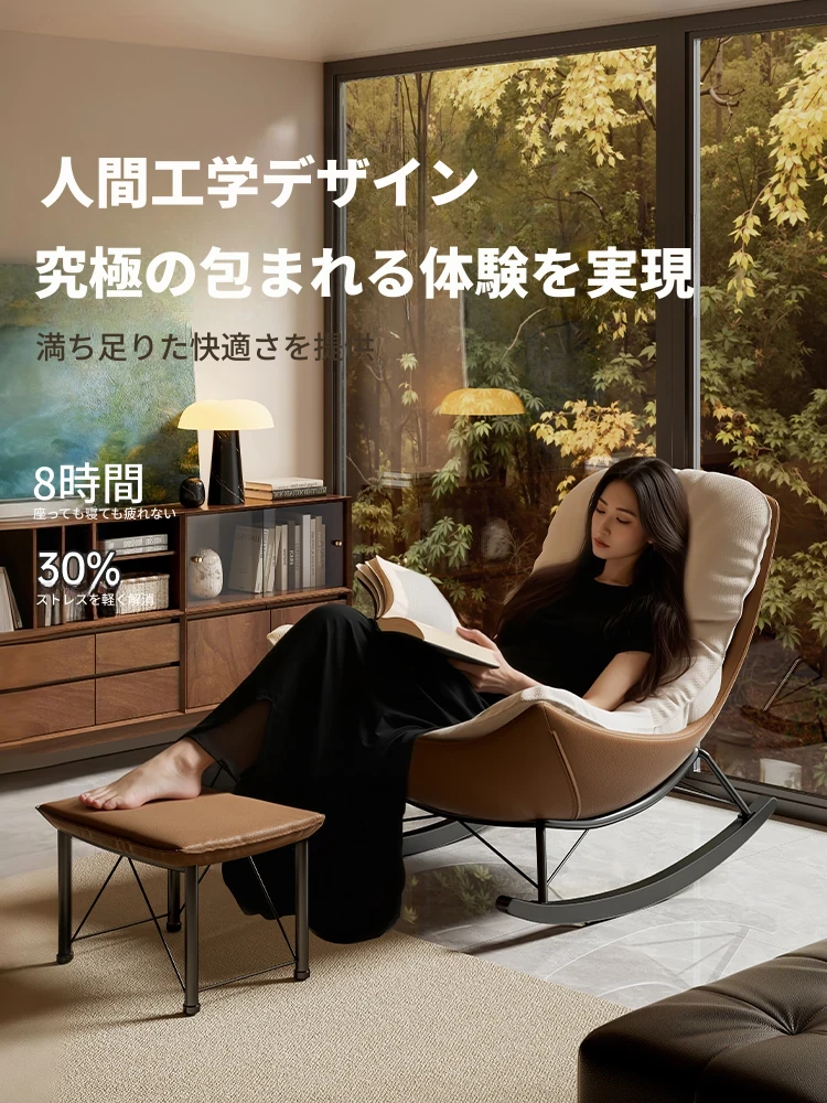リラックスソファ 一人用 寝転びやすい シンプルデザイン 小型スペースに最適 ゆったり揺れるロッキングチェア バルコニーや家庭でのくつろぎタイムにぴったり!