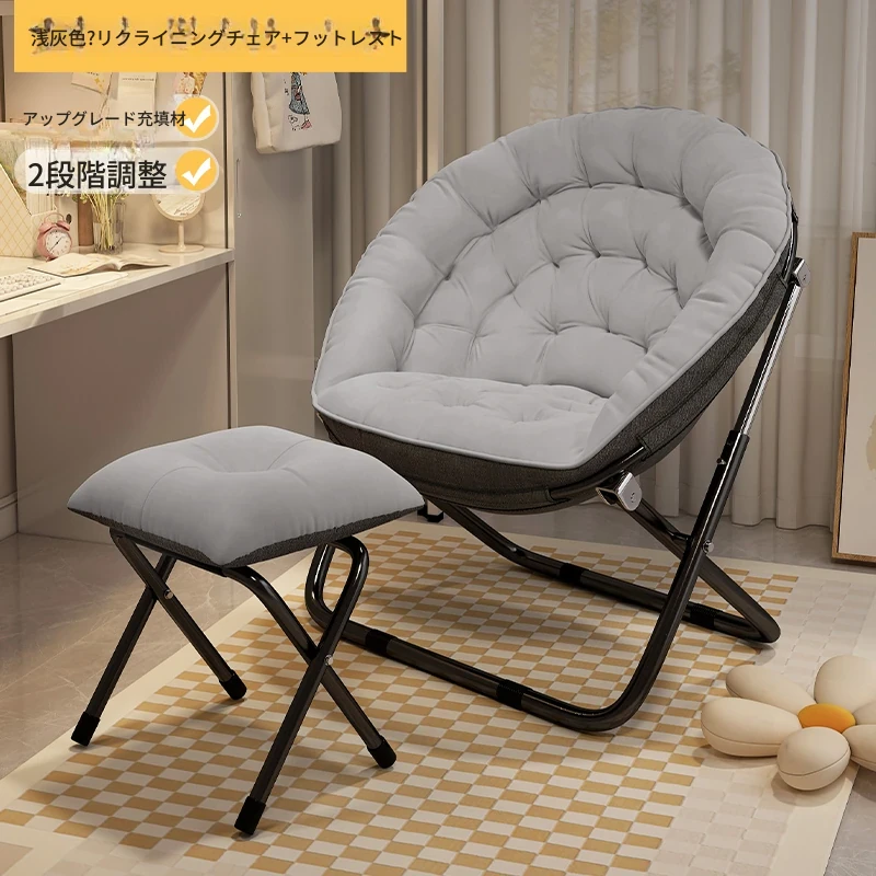 【快適フットレスト】ライトグレー-学生寮用リクライニングチェア【アップグレード洗濯不要フロッキング素材】