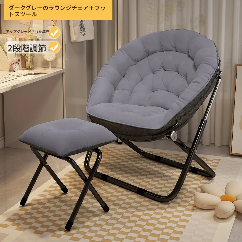 【快適フットレスト】ダークグレー-学生寮用リクライニングチェア【アップグレード洗濯不要フロッキング素材】