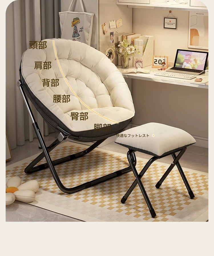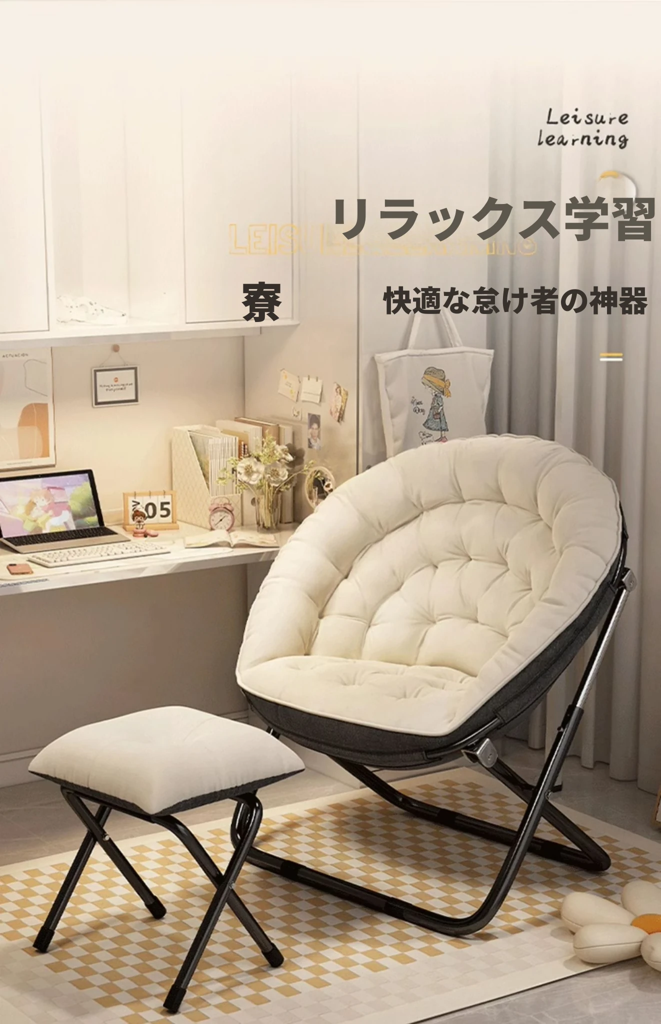 【快適フットレスト】ウォームホワイト-学生寮用リクライニングチェア【アップグレード洗濯不要フロッキング素材】