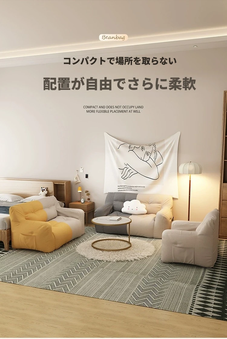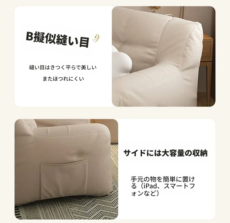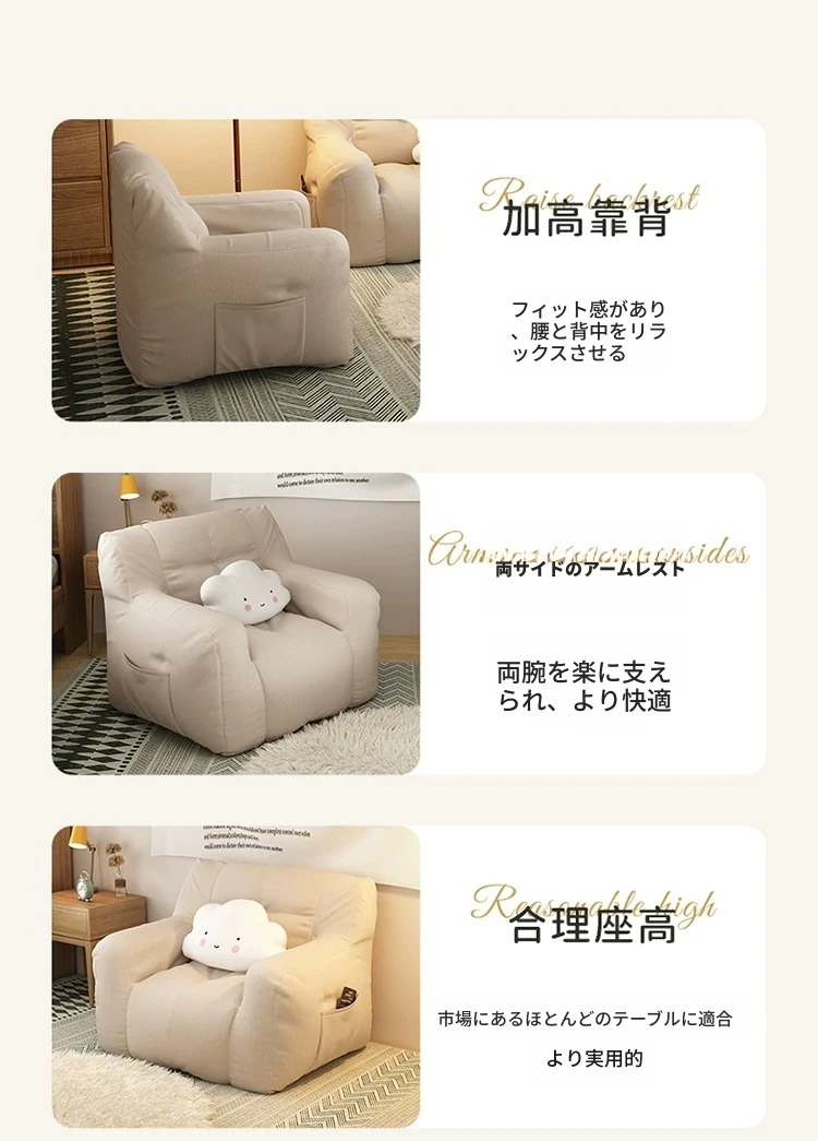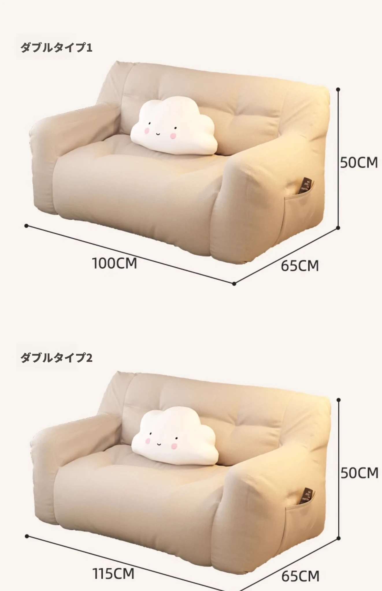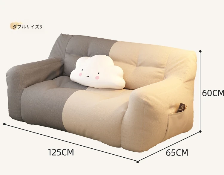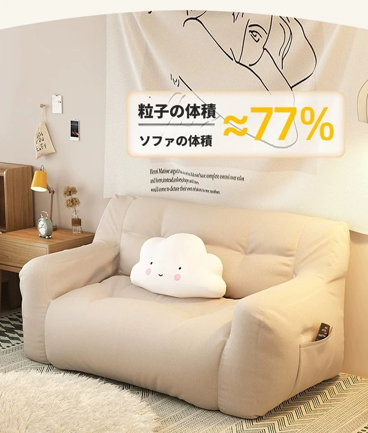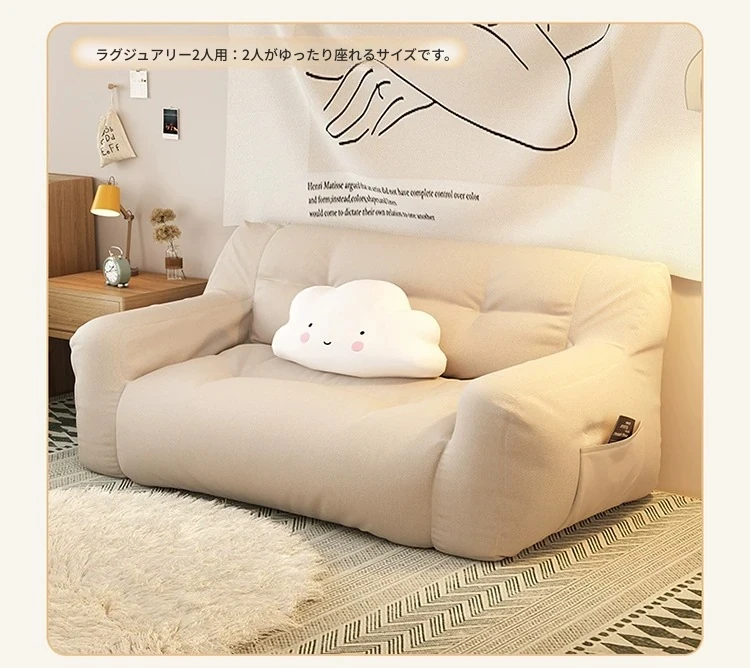二人用-中サイズ❎淡いアイボリー【充填増量 長時間座っても潰れない】