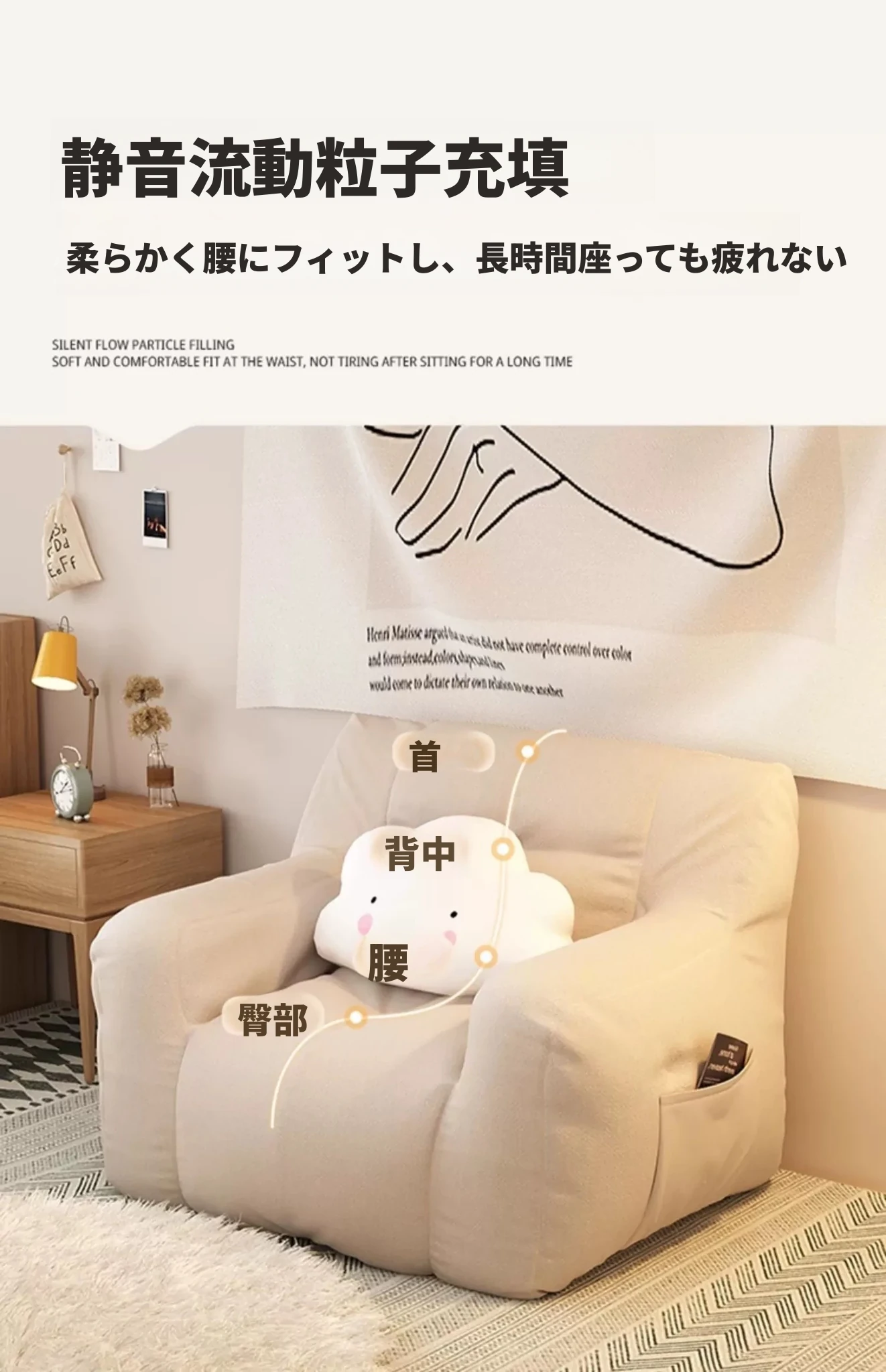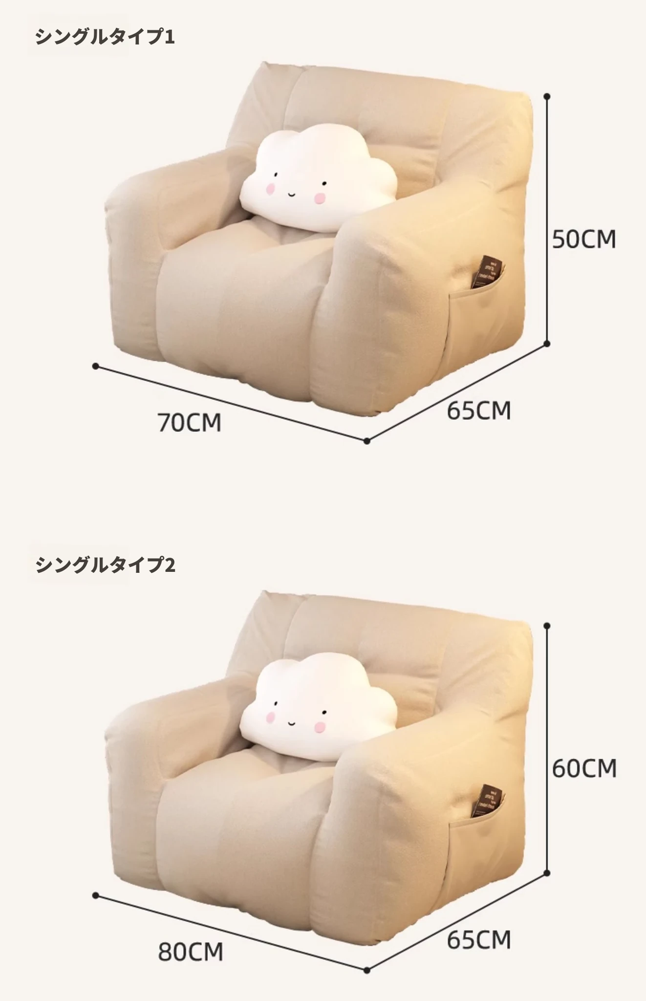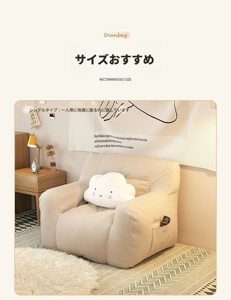一人用⭐大サイズ--淡いアイボリー【充填増量 長時間座っても潰れない】