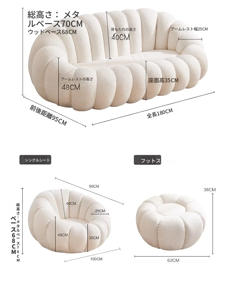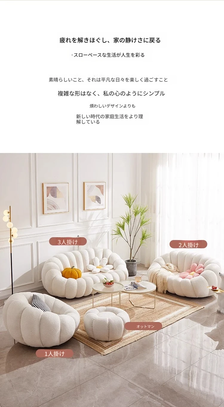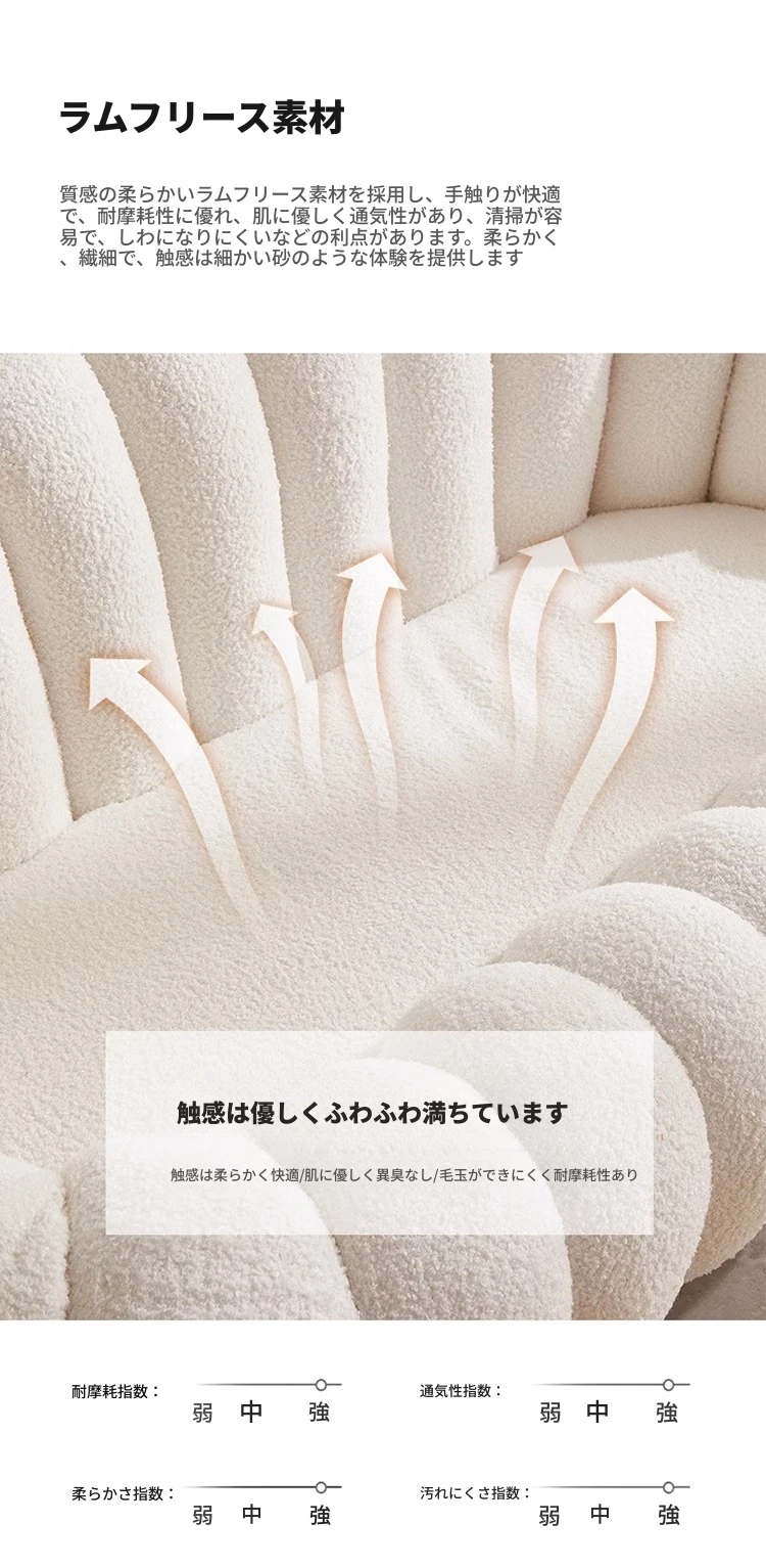可愛らしい羊羔フリースのタタミラウンジソファ - ダブル & トリプルサイズ、ホワイト!寝室やバルコニーにぴったりのリラックス空間を演出します。心地よい座り心地で、くつろぎのひとときをお楽しみください!