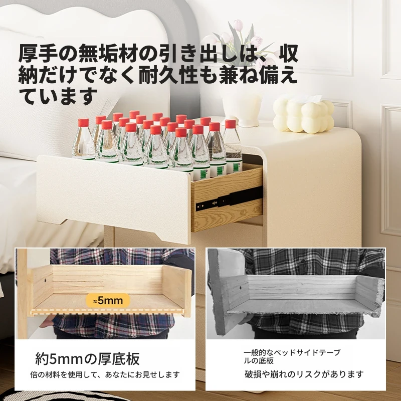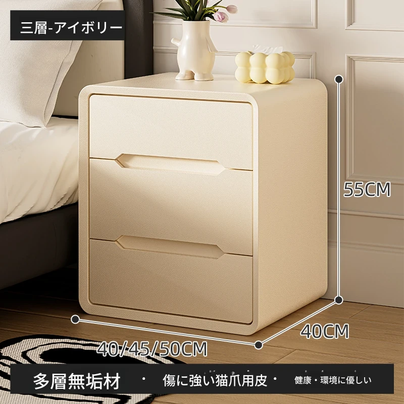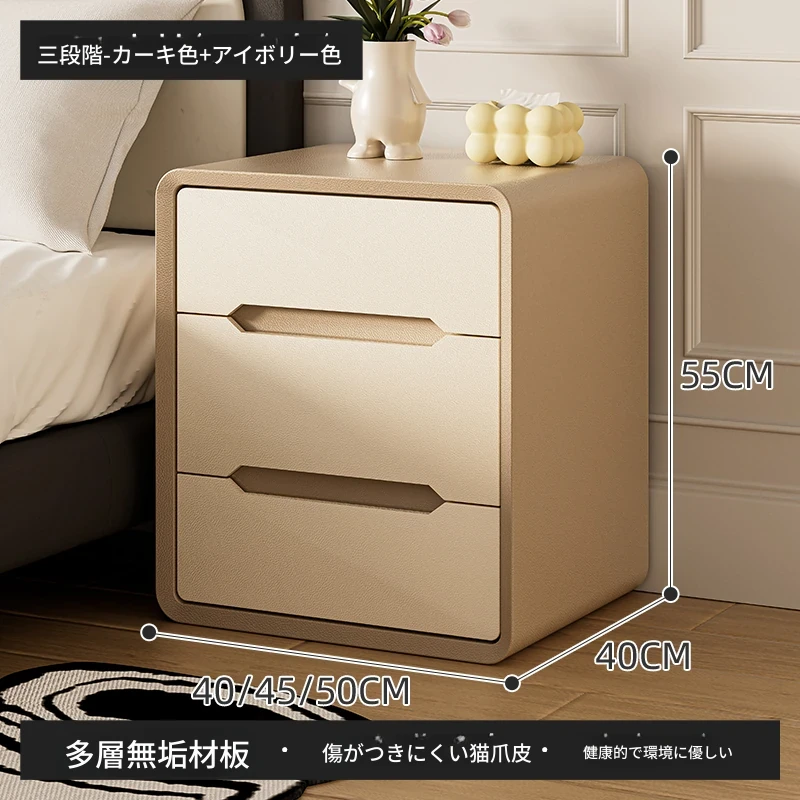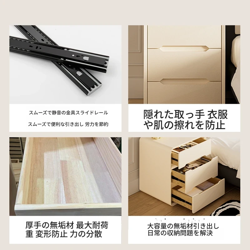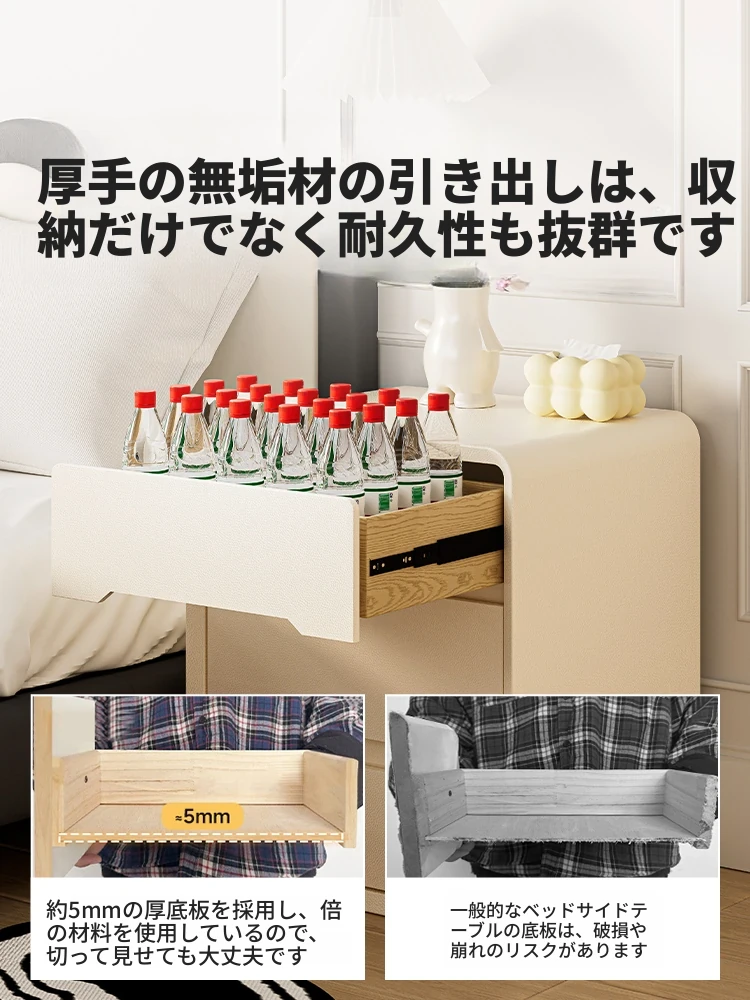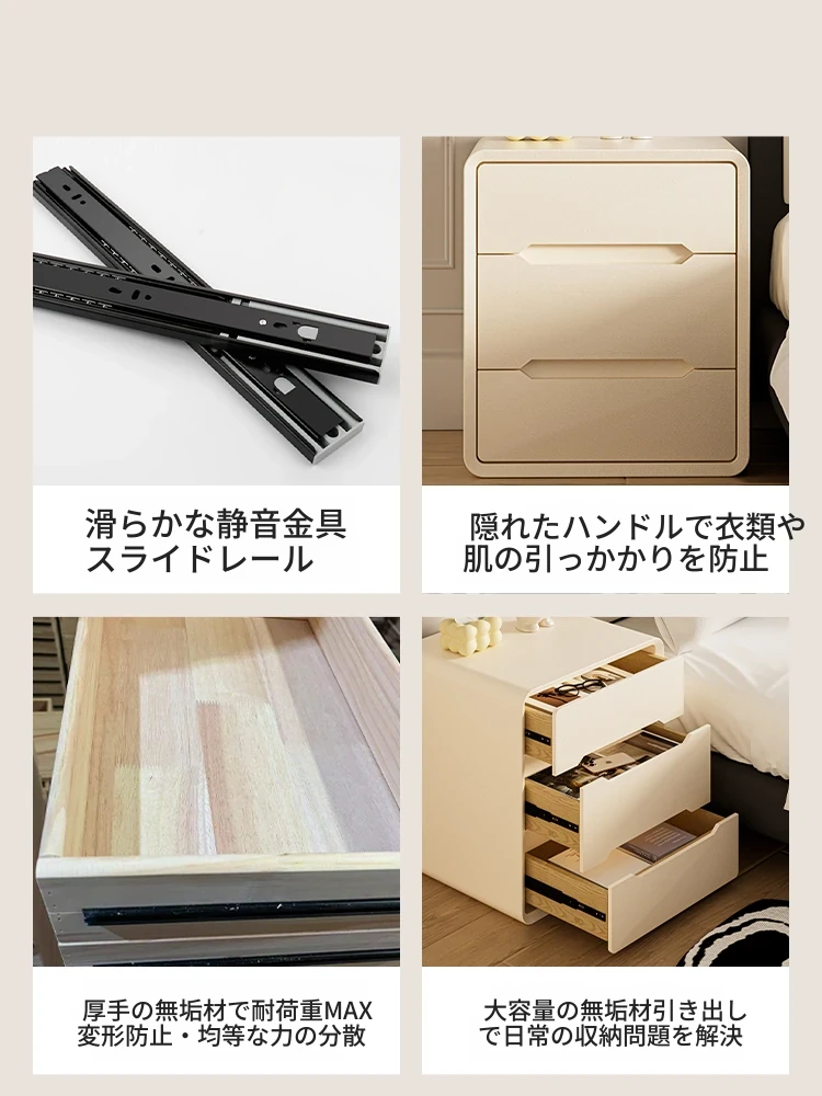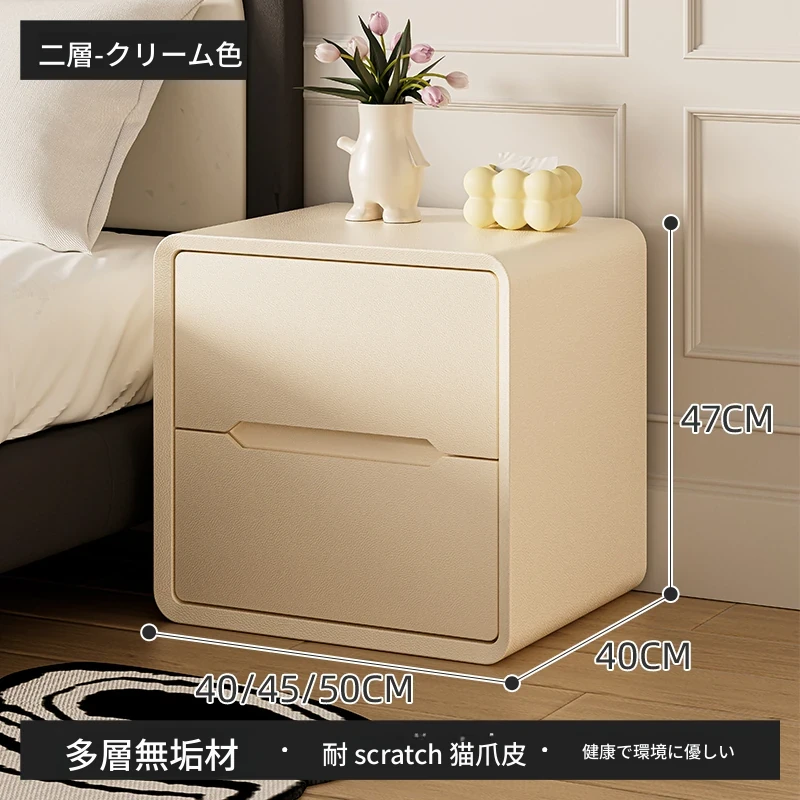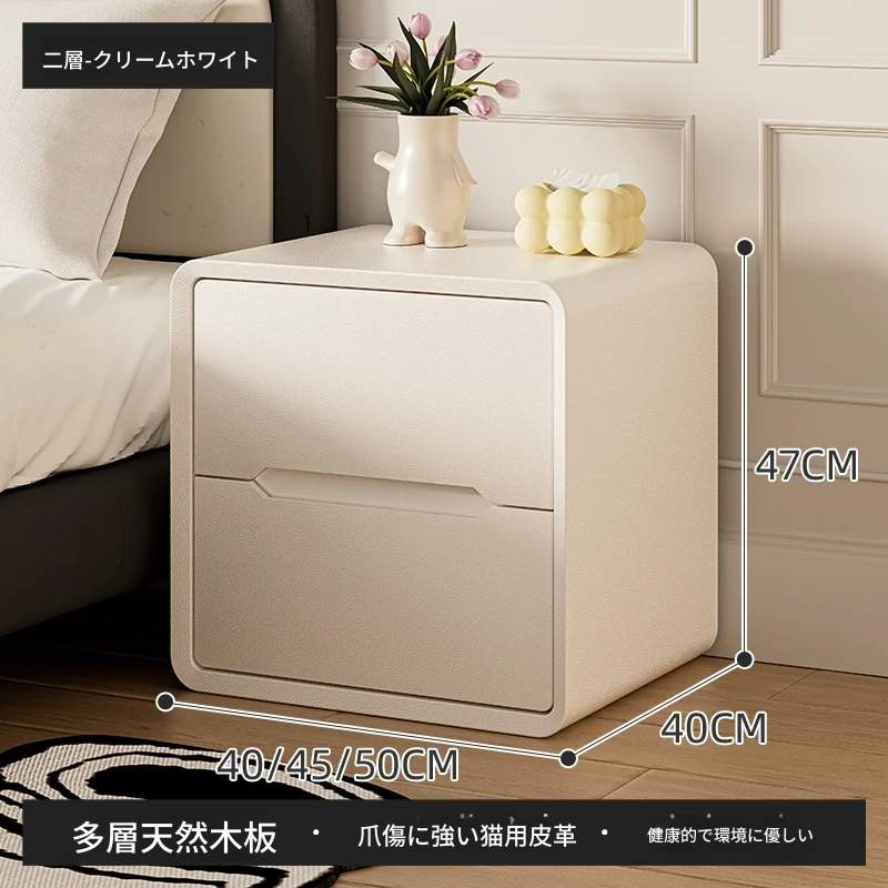 クリーム風デザインの無垢材ベッドサイドキャビネット - 家庭用小型収納ボックス、2025年のヒット商品!軽やかなラグジュアリー感で、あなたの寝室を格上げします。