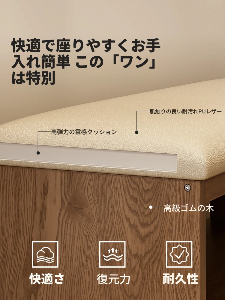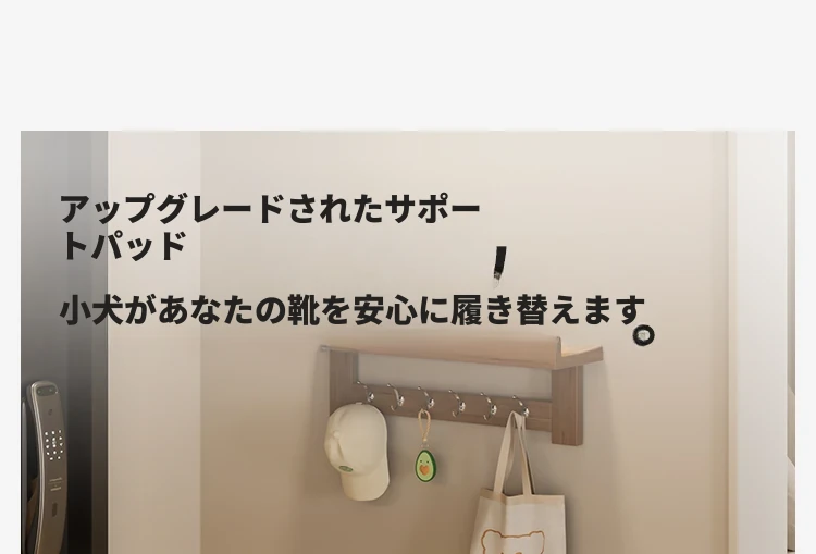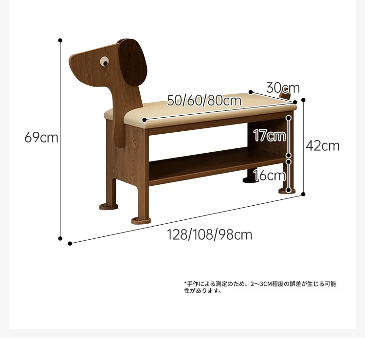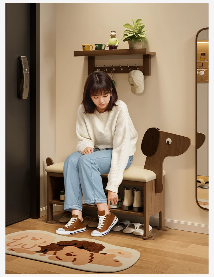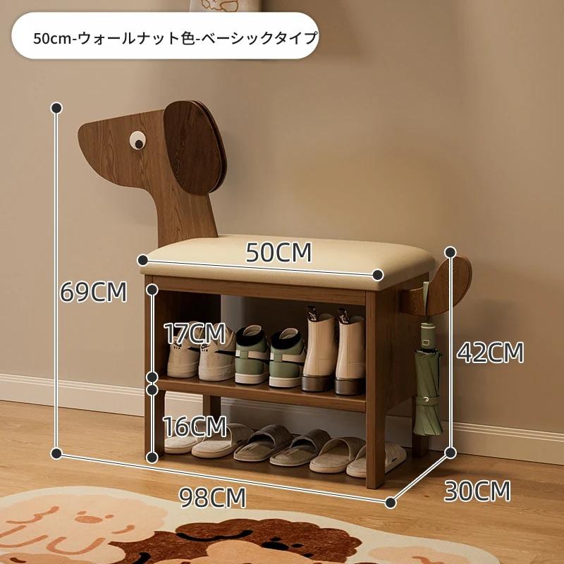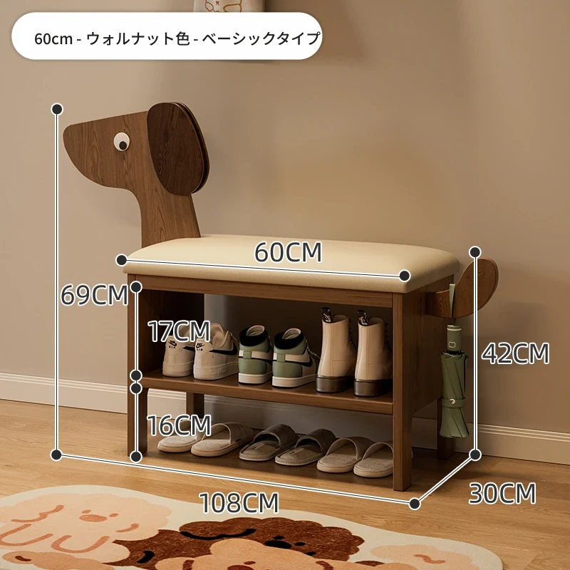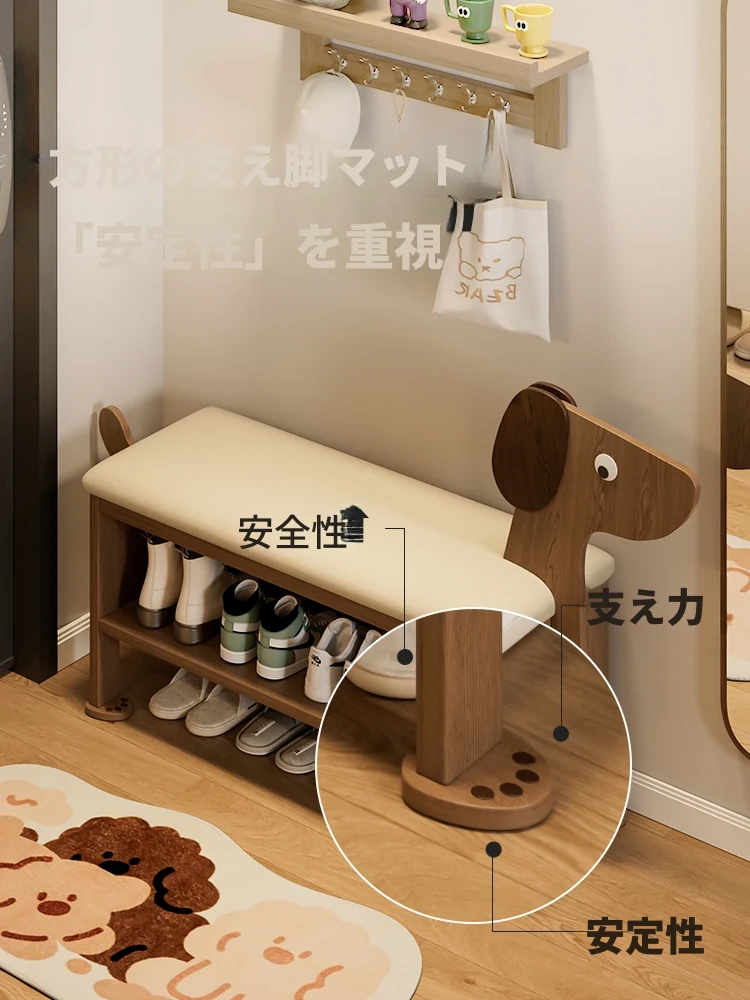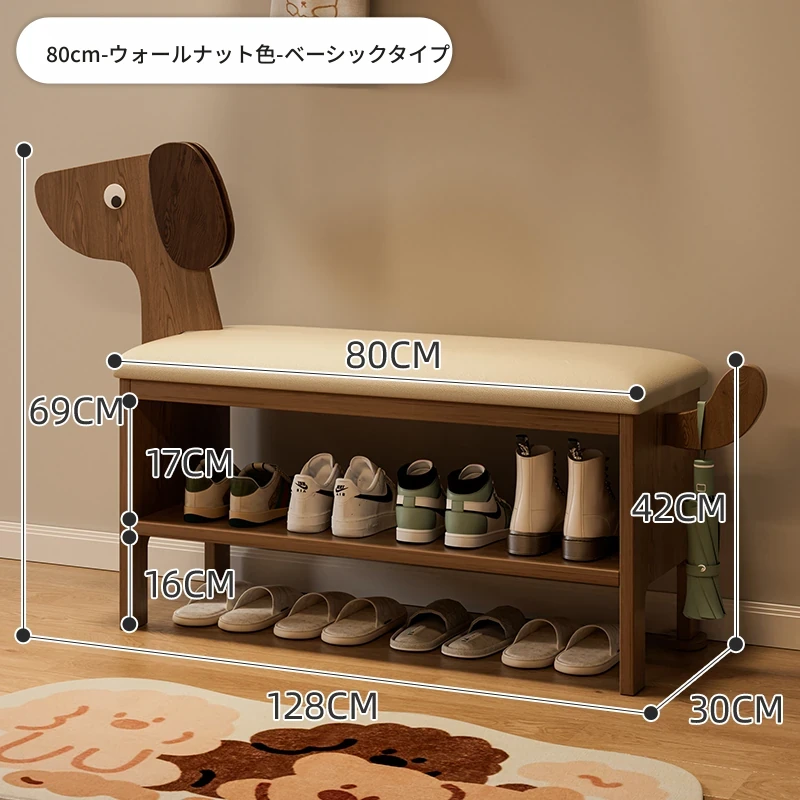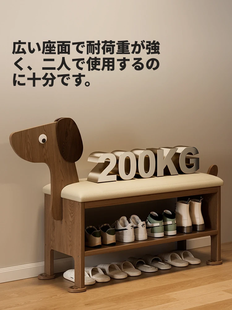 玄関用の靴交換ベンチ - おしゃれな犬型デザインの実木製収納ベンチ!省スペースで便利、家族やゲストを迎えるのに最適なアイテムです。快適に靴を履き替えながら、お部屋に可愛らしさをプラス!