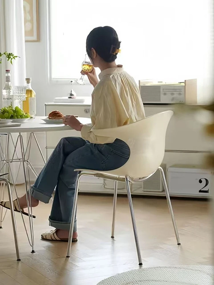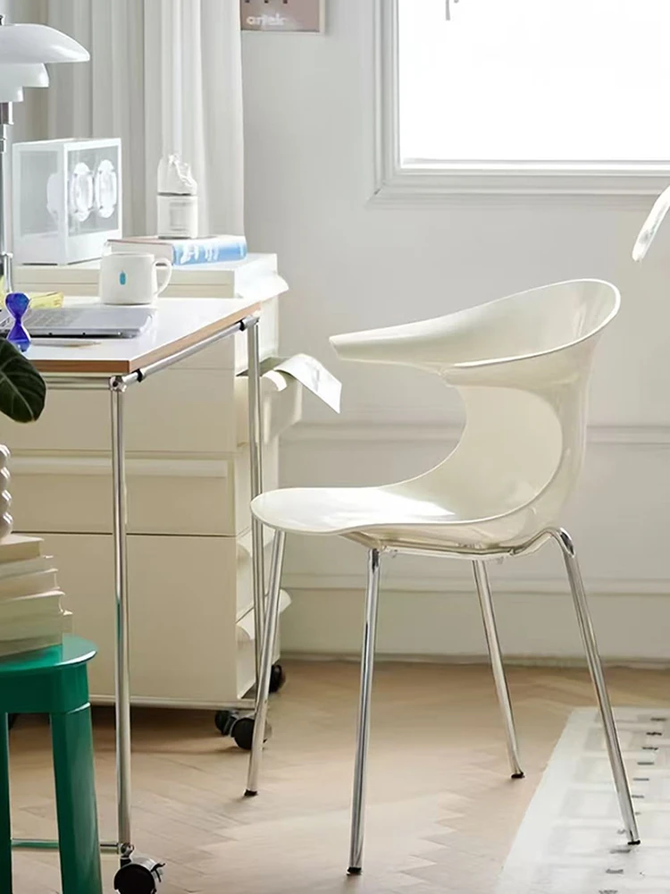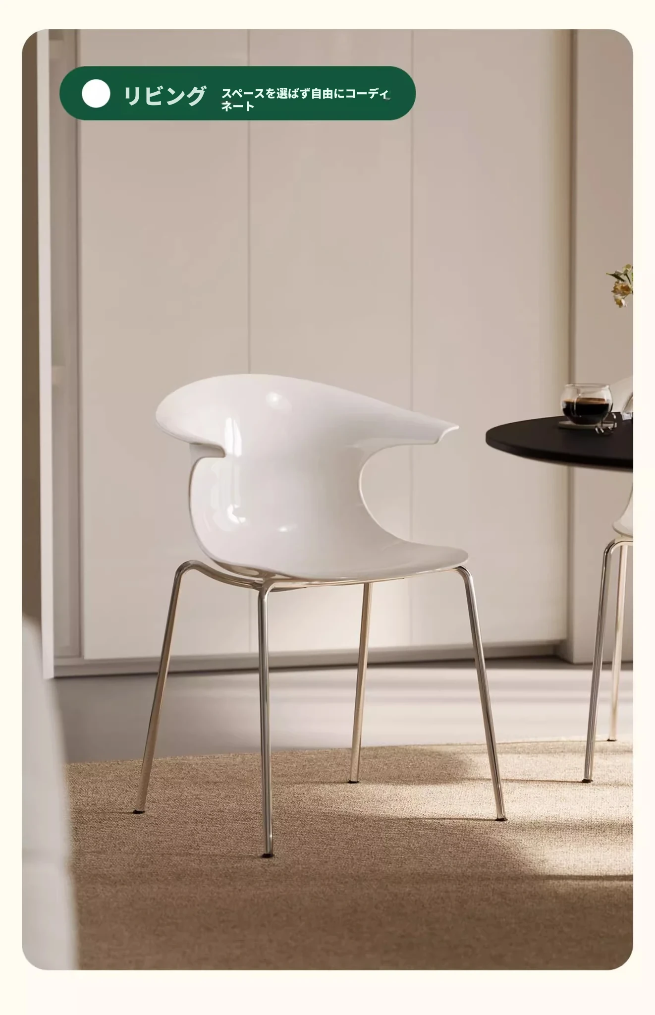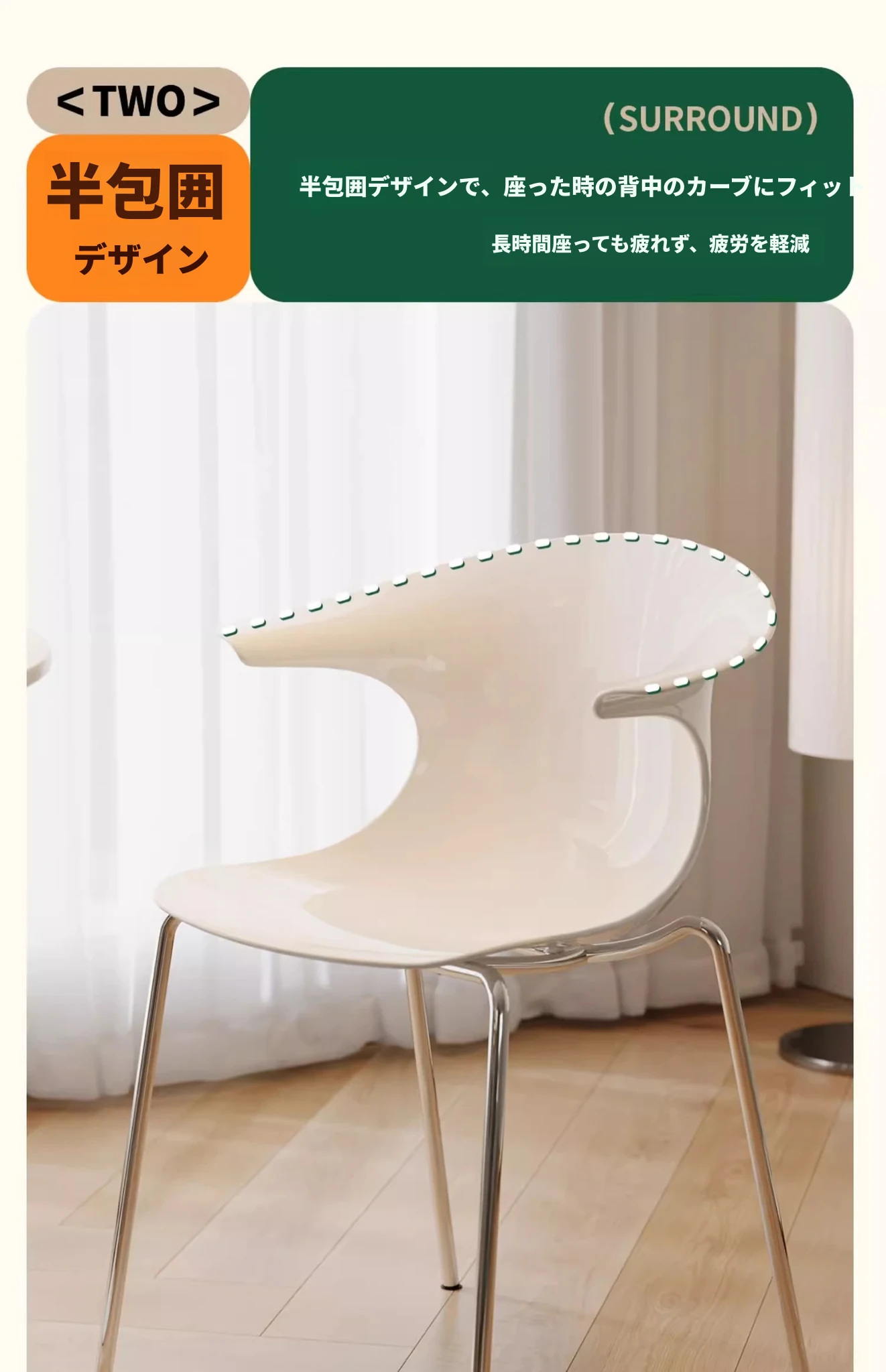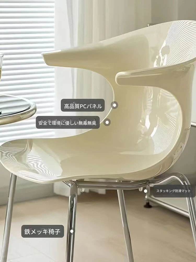 クリエイティブなデザインのアクリル背もたれ椅子!自宅用にぴったりで、カフェや洽談にも最適なリラックスチェア。優雅なクリームカラーで、空間を華やかに演出します。