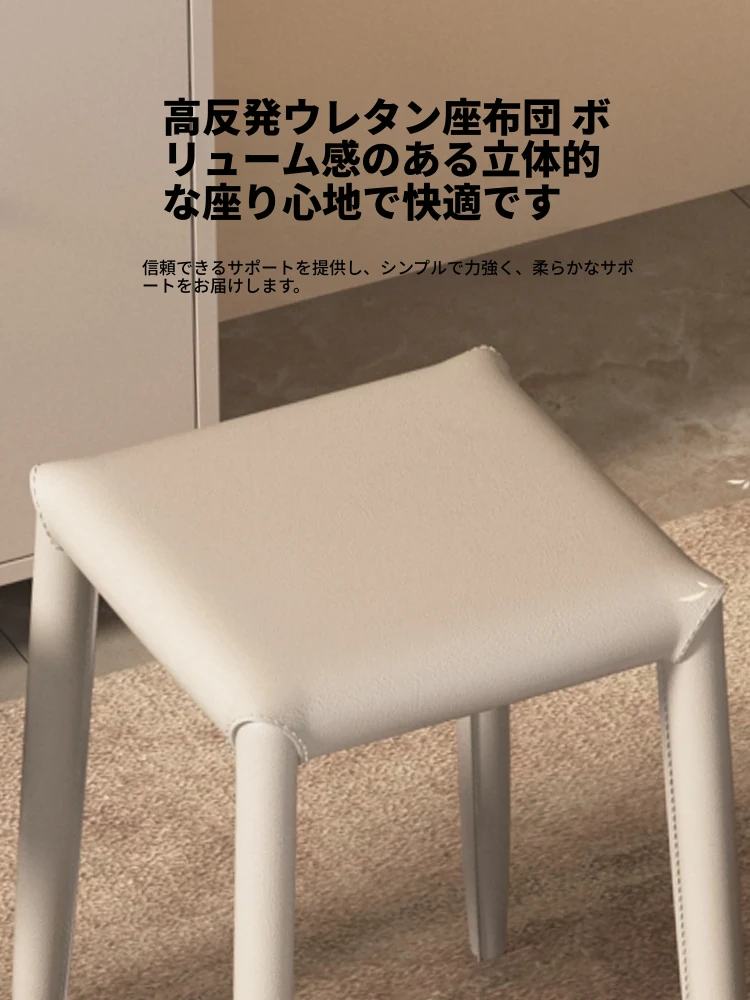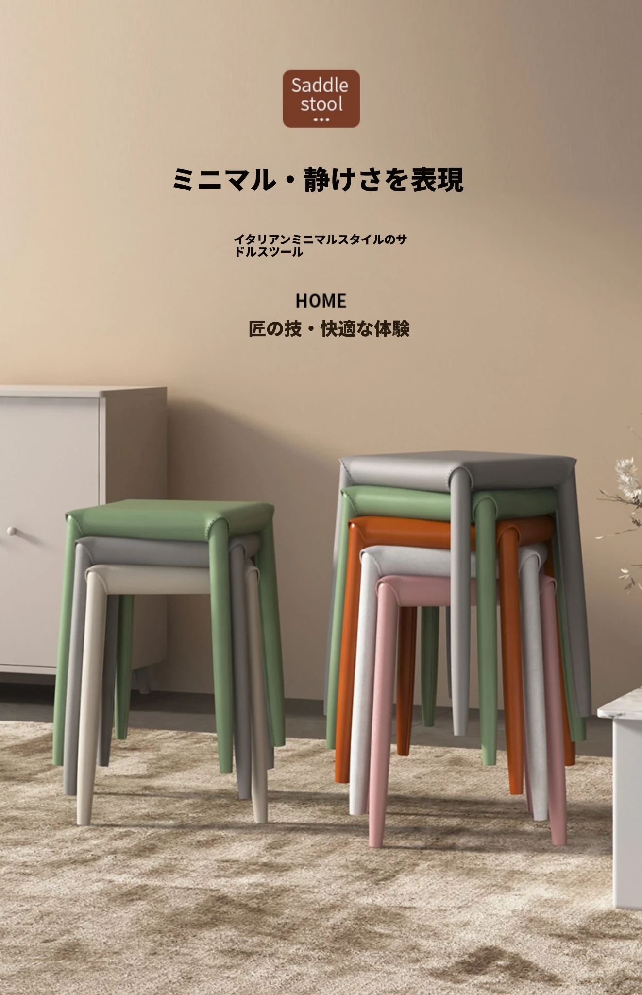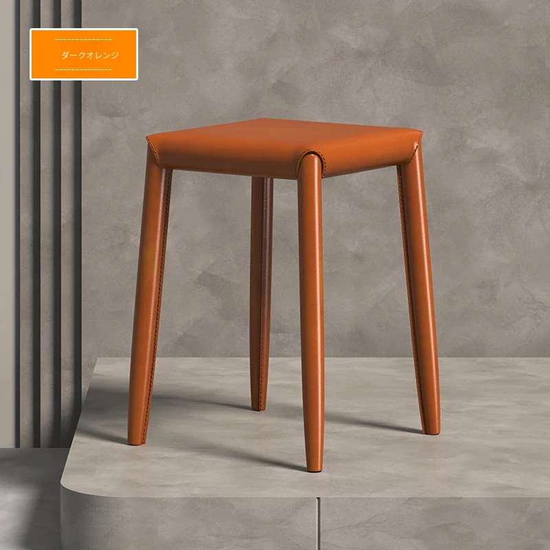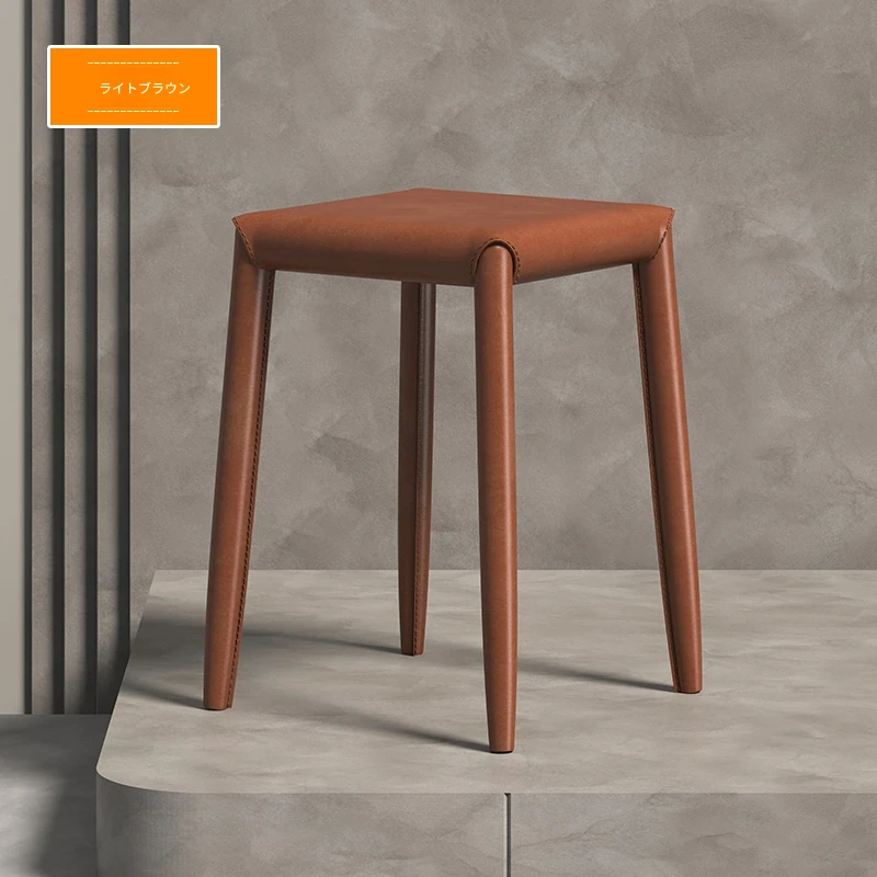 高級感あふれるマ saddle leather ダイニングチェア - デザイナー仕様のスタイリッシュな食卓椅子。家庭用に最適、スタッキング可能なスクエアスツールで、空間を有効活用!