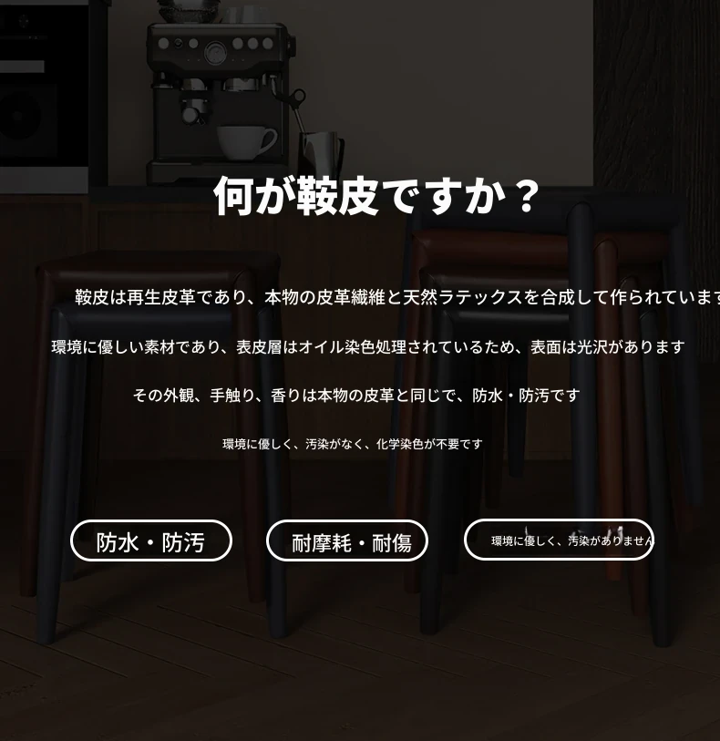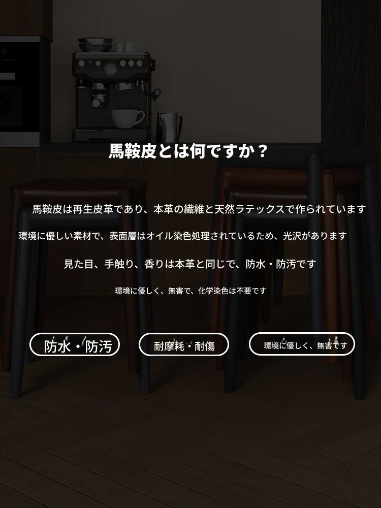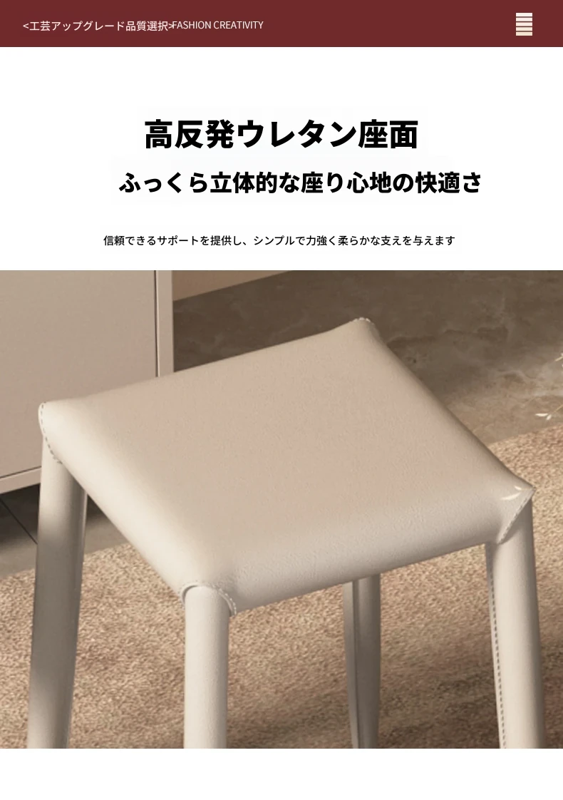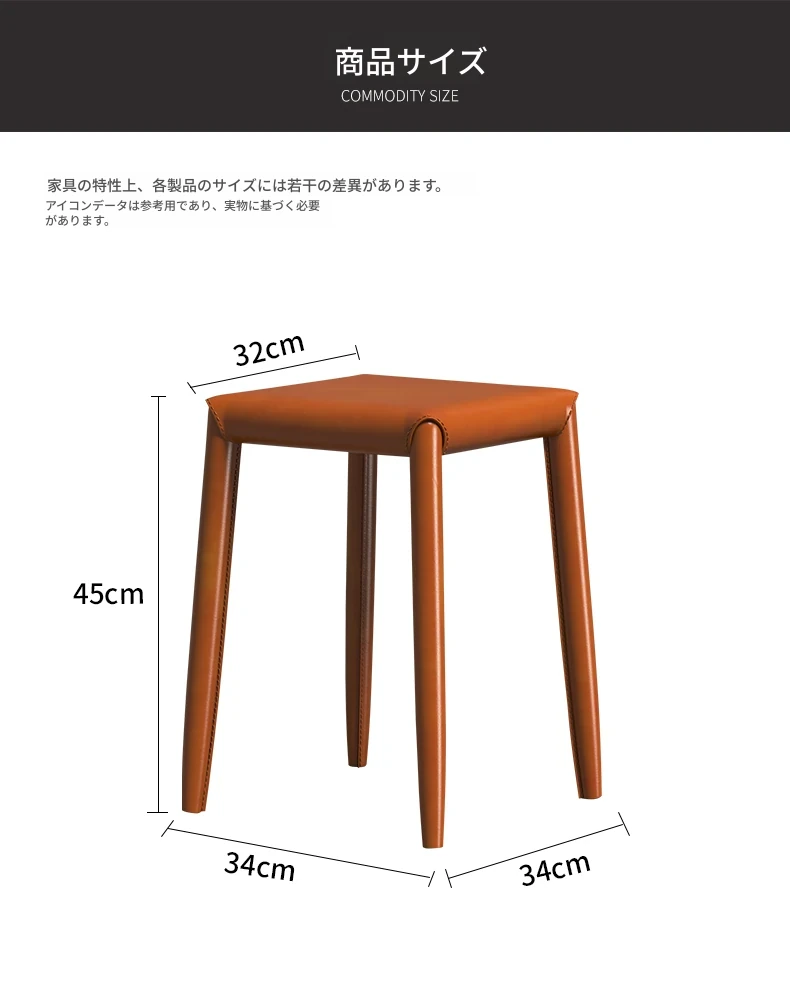 高級感あふれるマ saddle leather ダイニングチェア - デザイナー仕様のスタイリッシュな食卓椅子。家庭用に最適、スタッキング可能なスクエアスツールで、空間を有効活用!