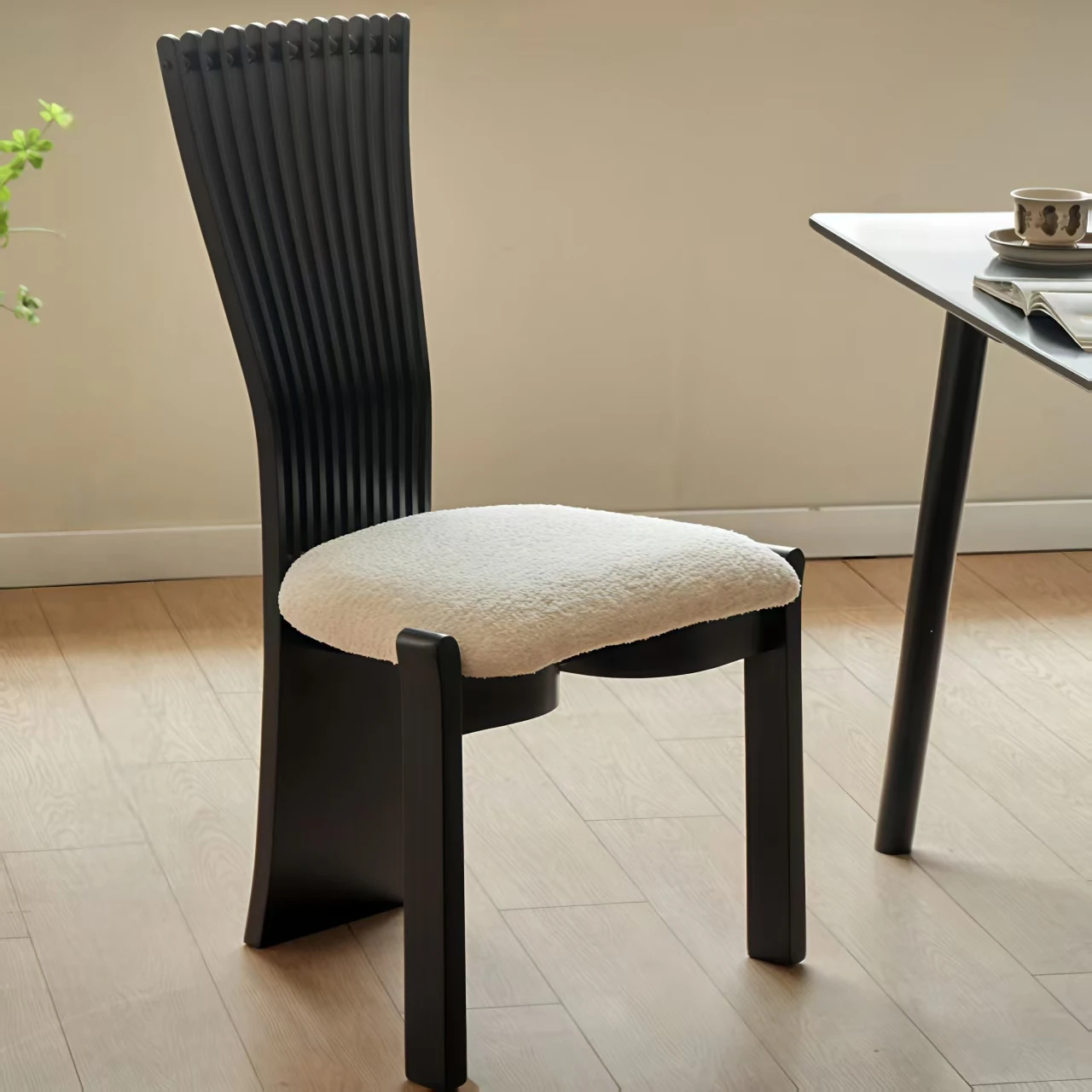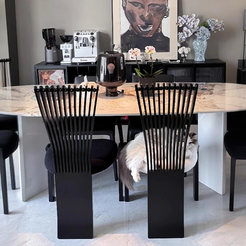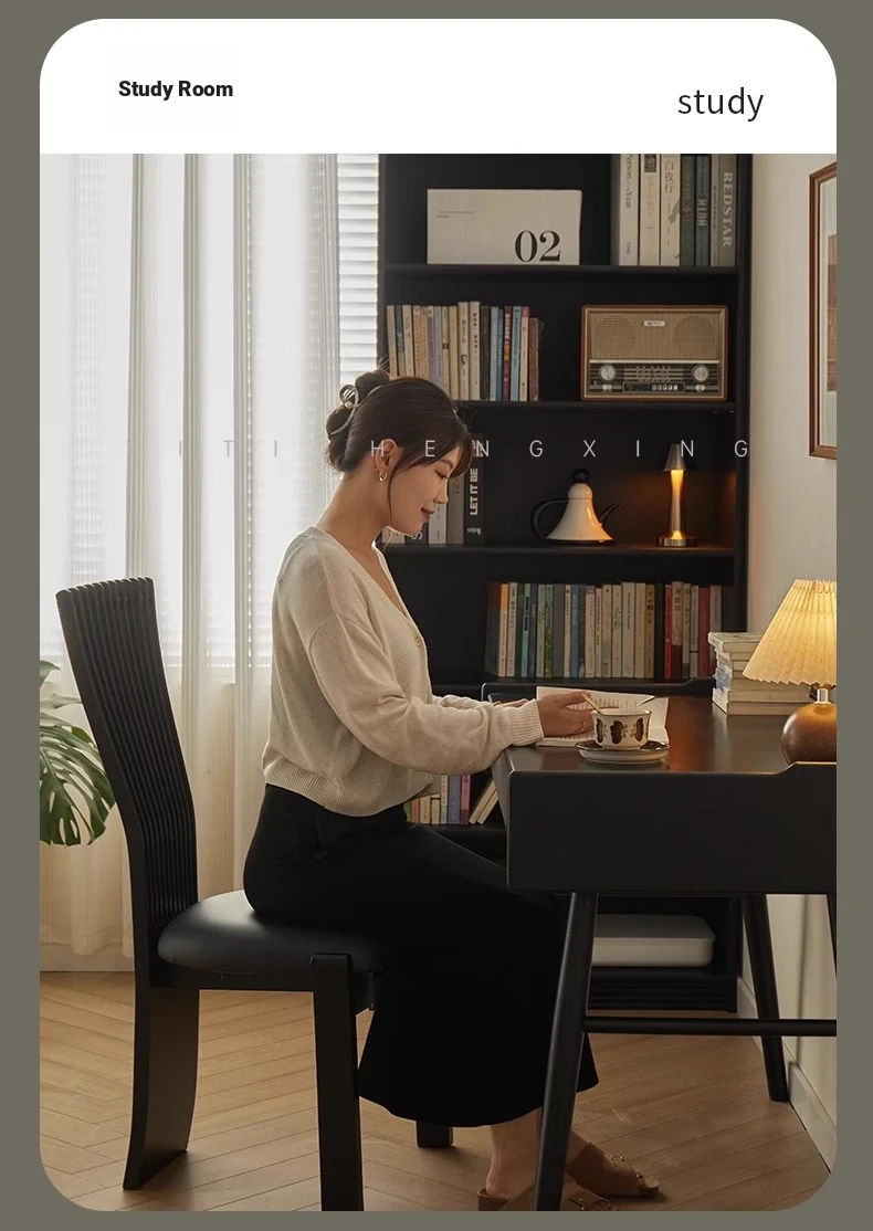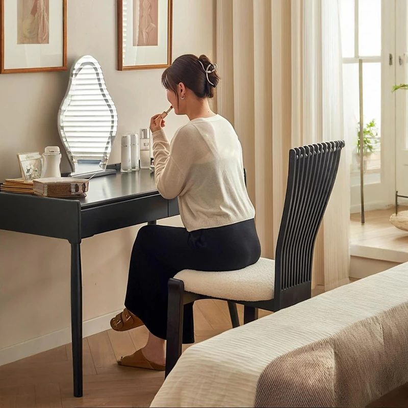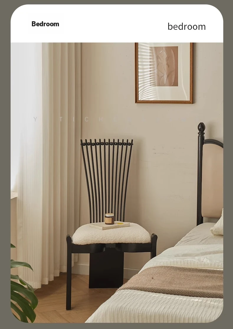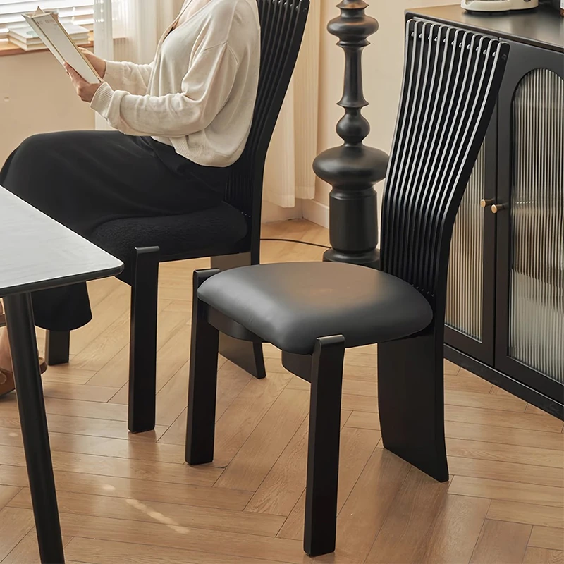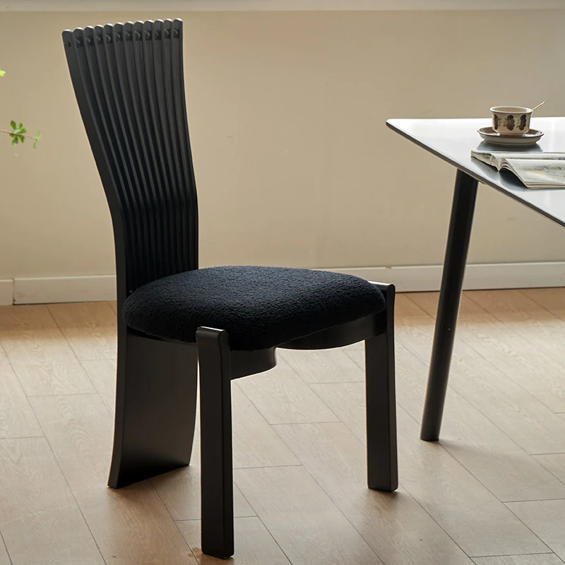 Designer Solid Wood Dining Chair with Creative Black Fan-Shaped Backrest - Vintage French Style Stool for 2025. Perfect for Adding Elegance to Your Dining Space!