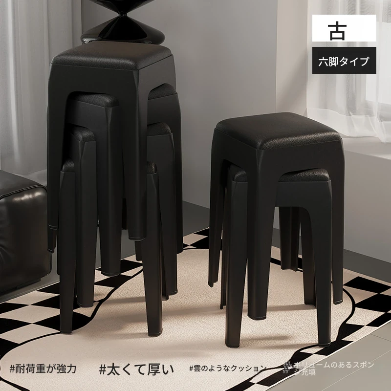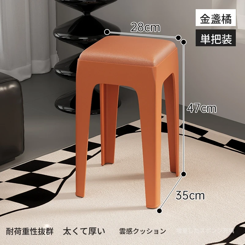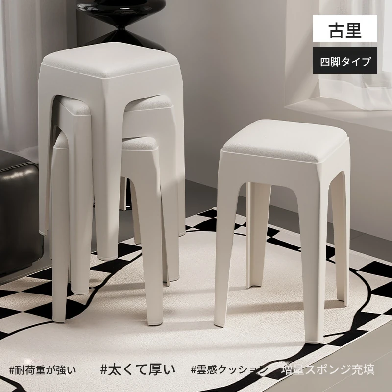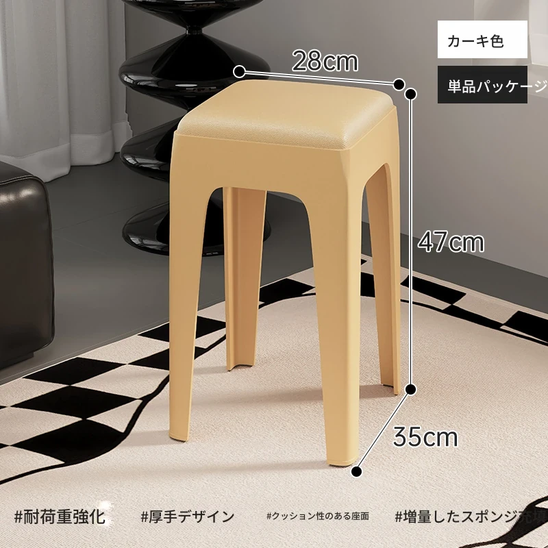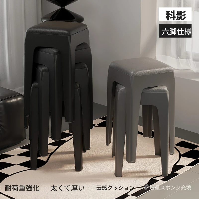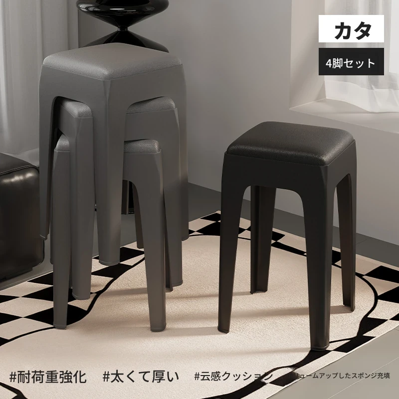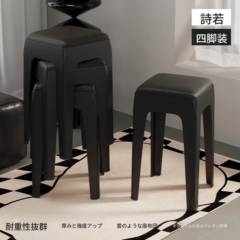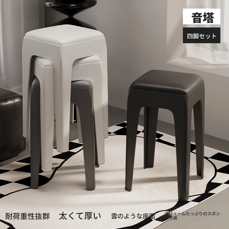 スタイリッシュな重ねられるプラスチックスツール - 家庭用に最適!頑丈で耐久性抜群、リビングやゲスト用に便利。高級感漂うソフトパッド付きで、快適さとデザインを両立!