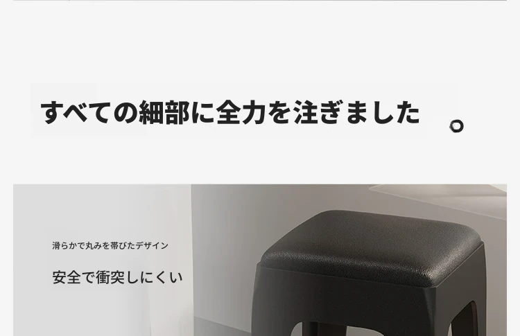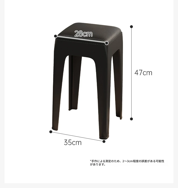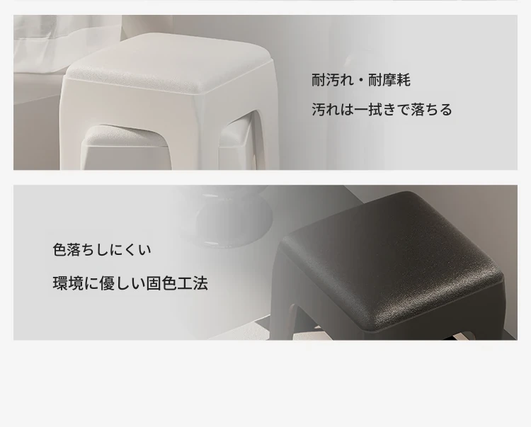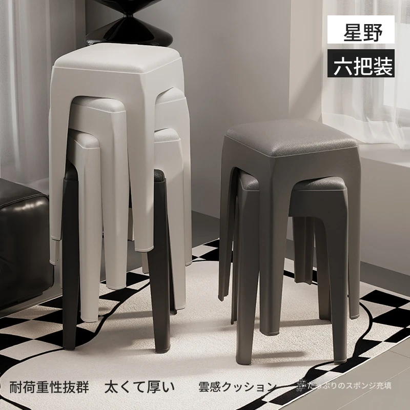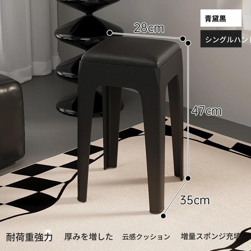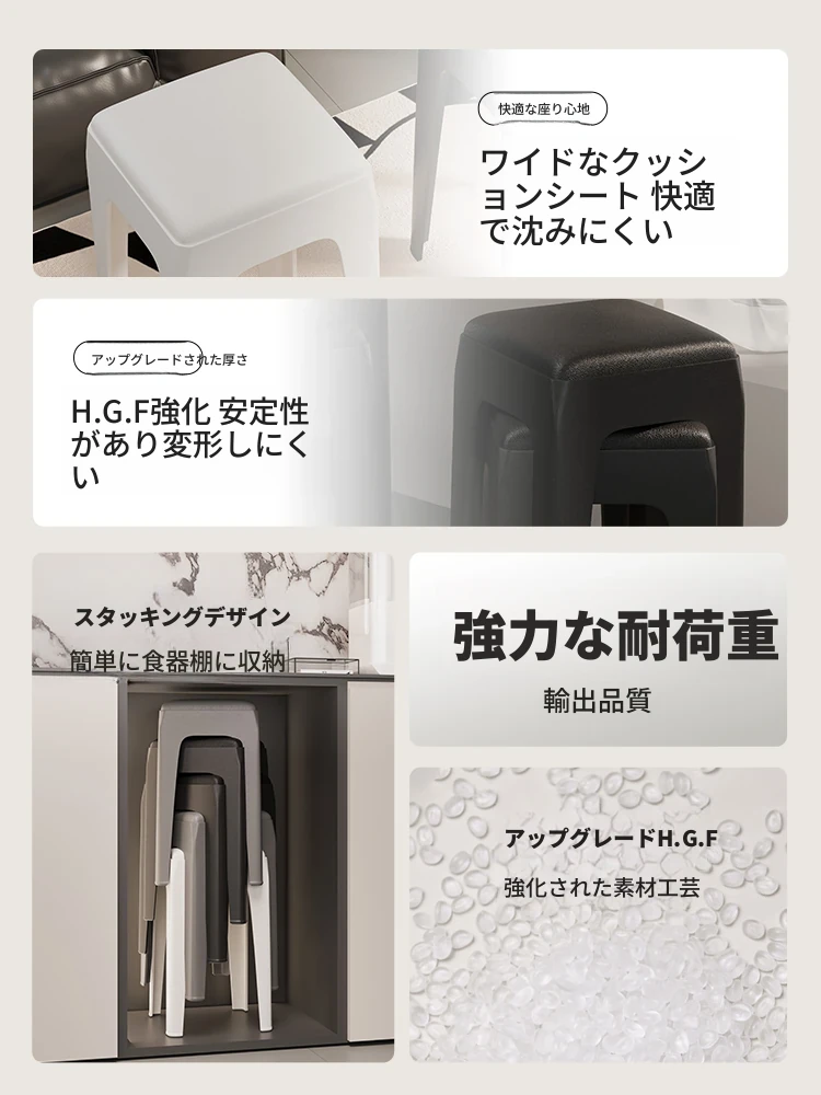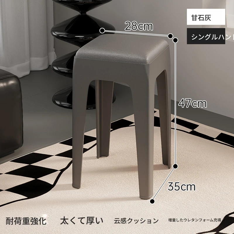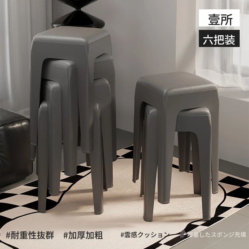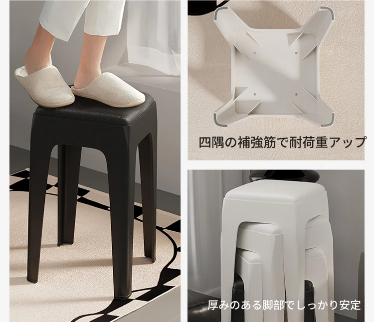 スタイリッシュな重ねられるプラスチックスツール - 家庭用に最適!頑丈で耐久性抜群、リビングやゲスト用に便利。高級感漂うソフトパッド付きで、快適さとデザインを両立!
