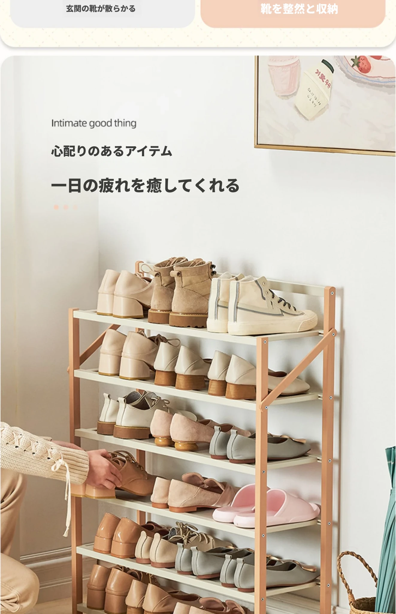 5段50cm-夕焼けピンク-【6年保証・高デザイン取り付け不要】