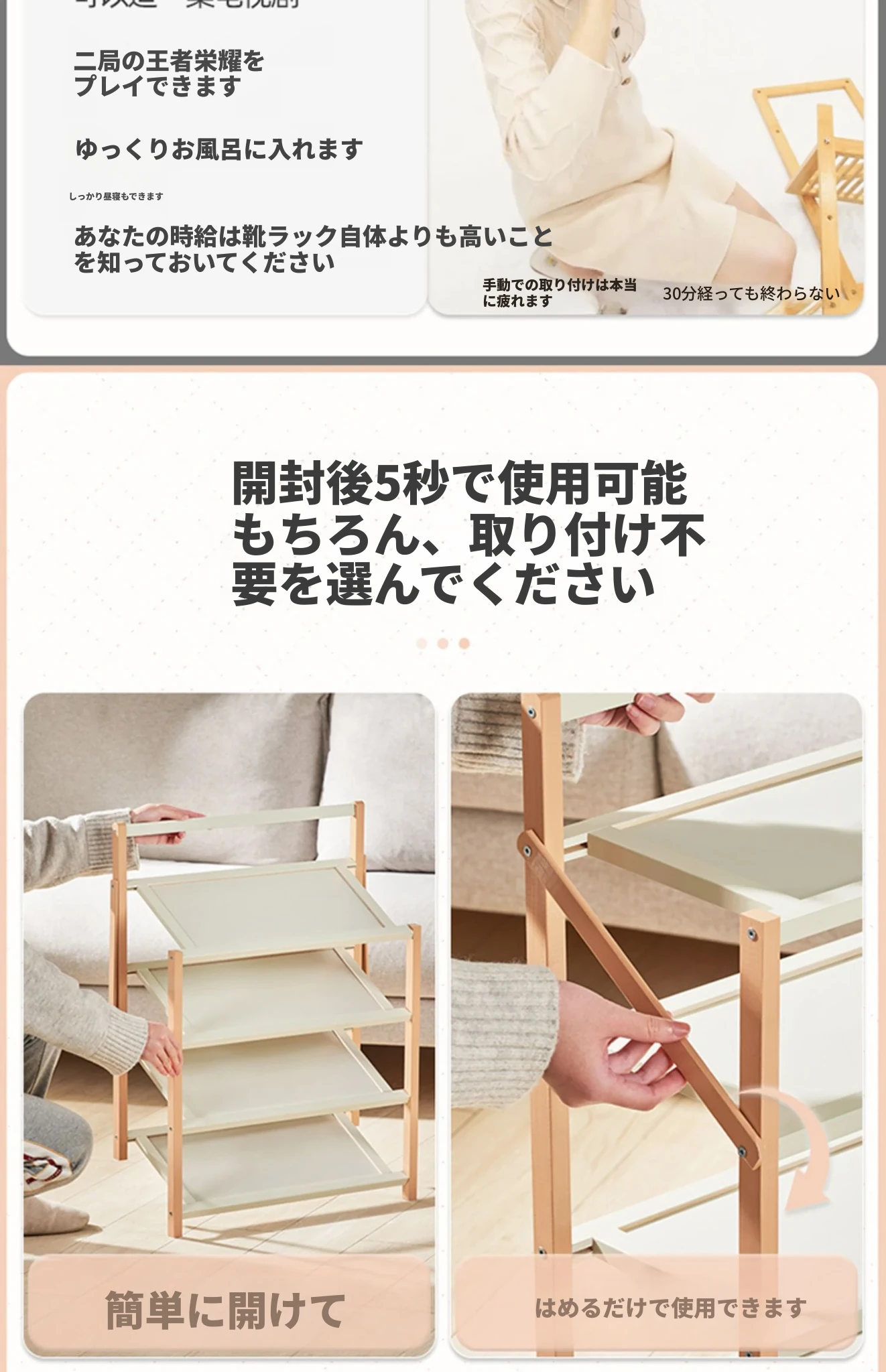 4段50cm-夕焼けピンク-【6年保証・高デザイン取り付け不要】
