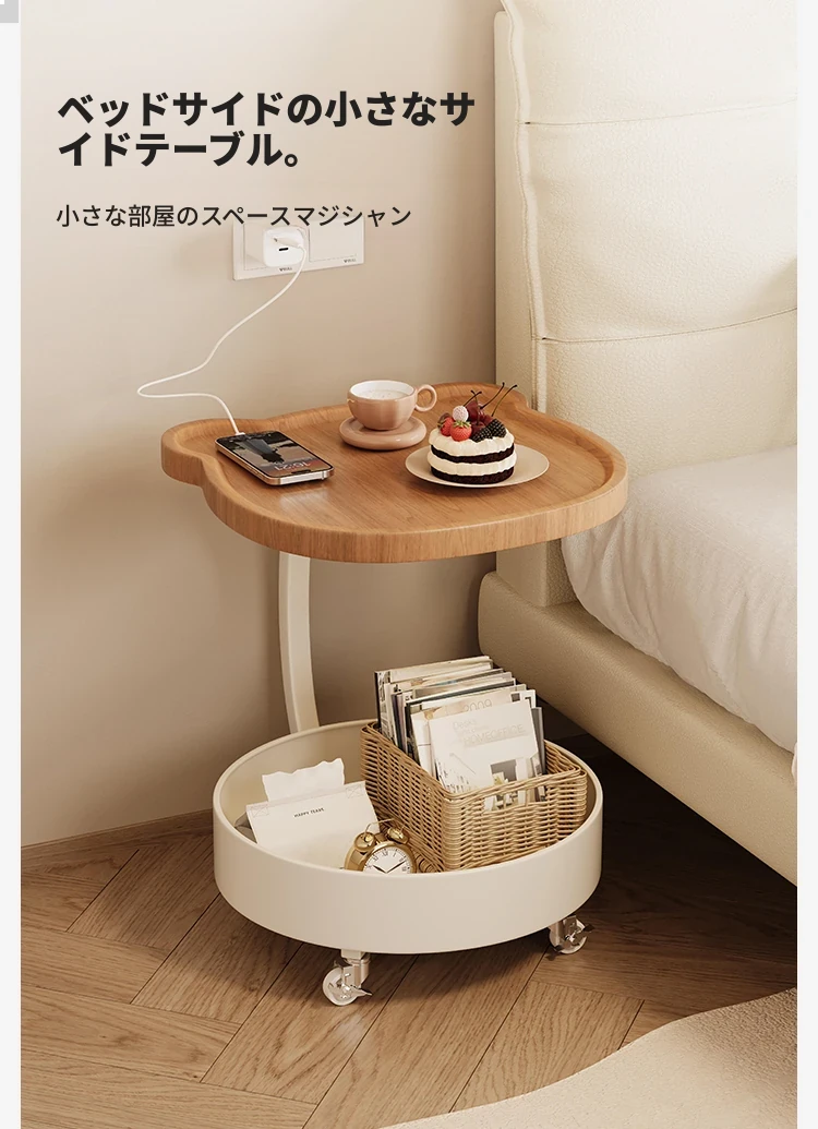 おしゃれで高級感溢れる移動可能なソファサイドテーブル!リビングにぴったりのクリエイティブな小型ティーテーブル。ベッドサイドの収納にも最適な便利なキャリーラックです。