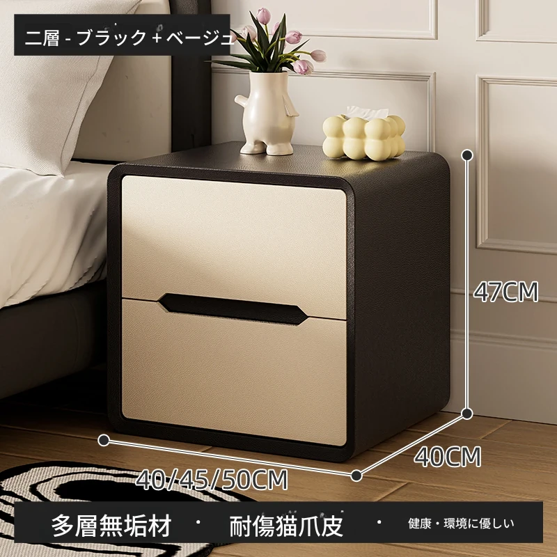 二段引き出し-黒色+アイボリー(厚手多層無垢材フレーム+無垢材引き出し)
