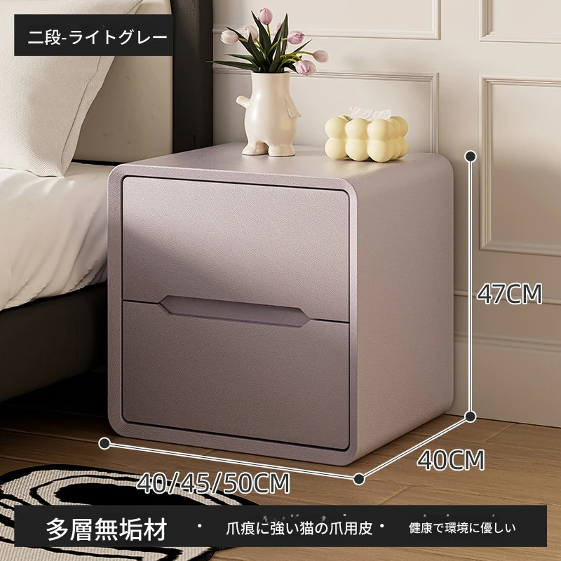 二段引き出し-ライトグレー(厚手多層無垢材フレーム+無垢材引き出し)