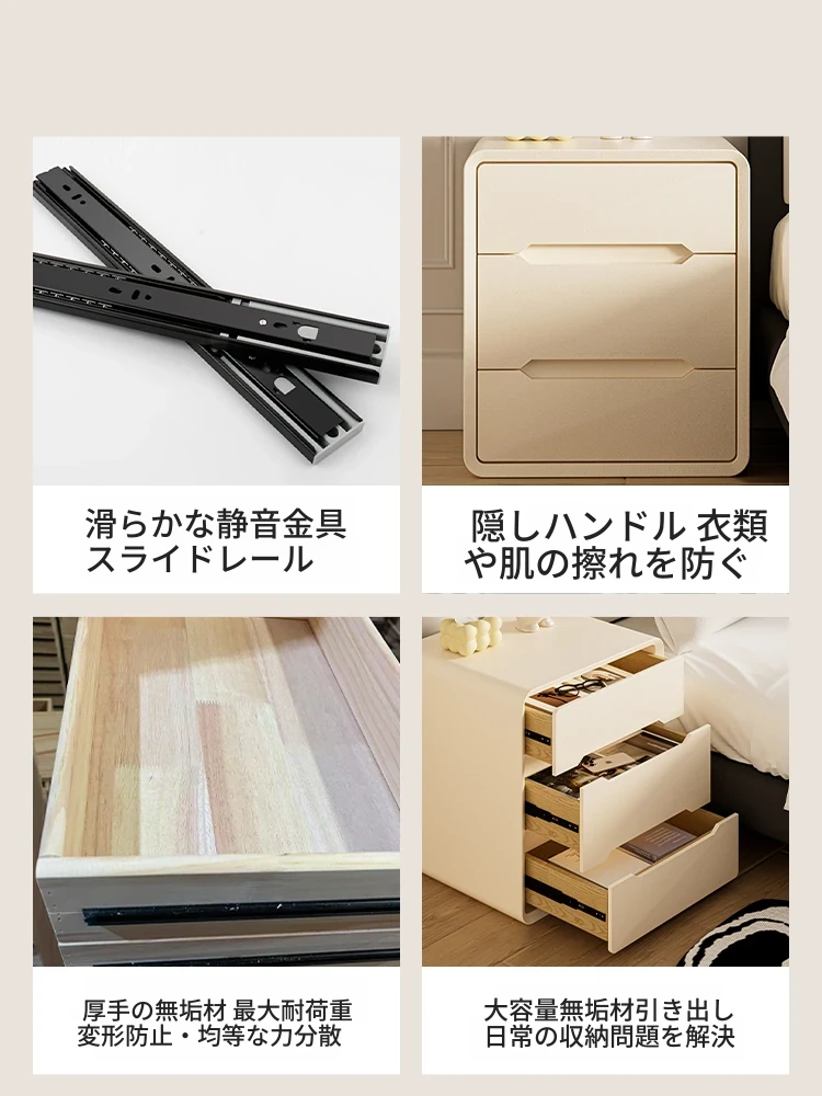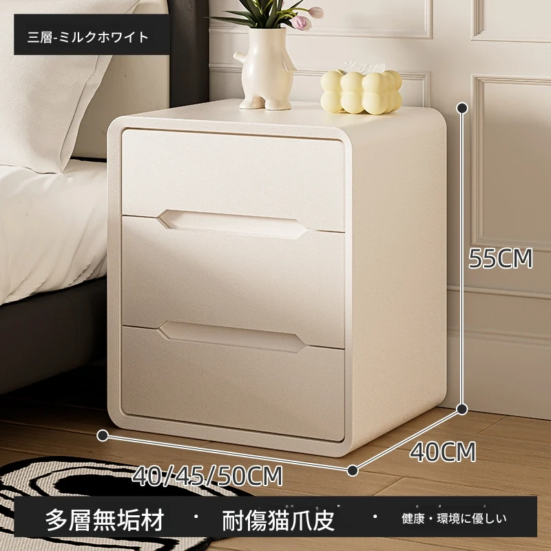 三段引き出し-クリームホワイト(厚手多層無垢材フレーム+無垢材引き出し)