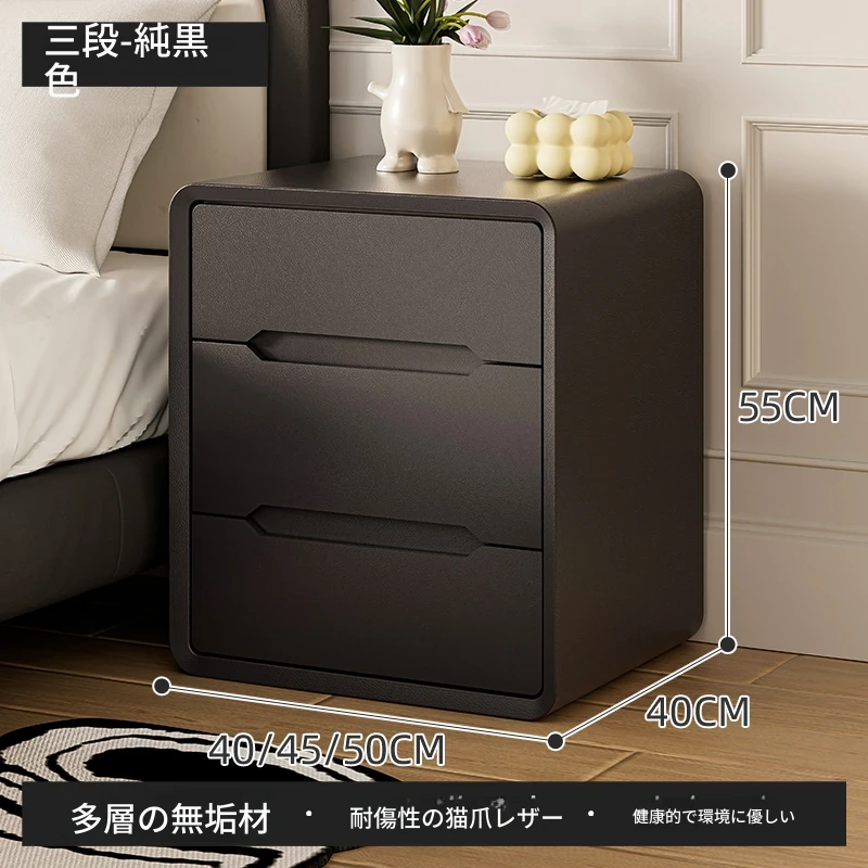 三段引き出し-純黒色(厚手多層無垢材フレーム+無垢材引き出し)