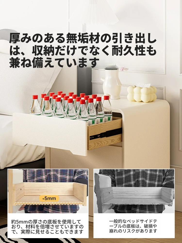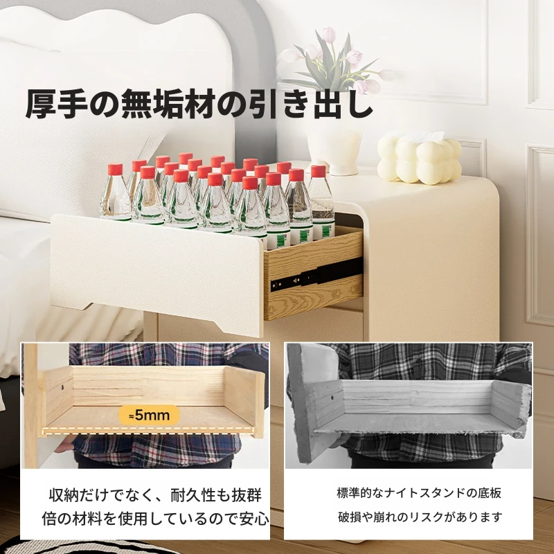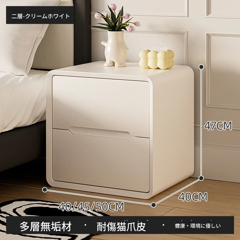 二段引き出し-クリームホワイト(厚手多層無垢材フレーム+無垢材引き出し)