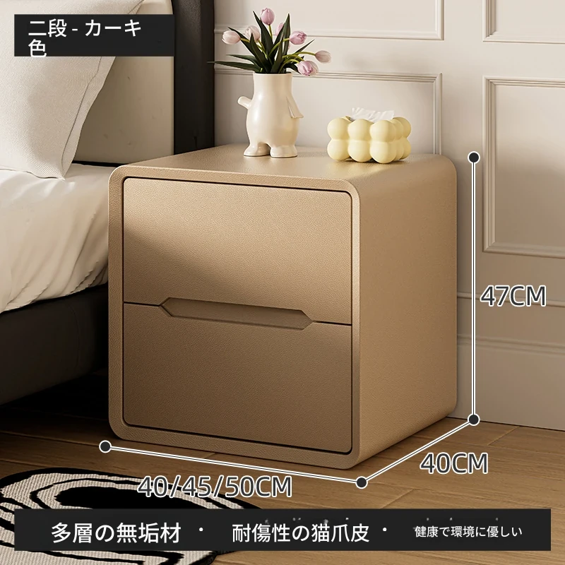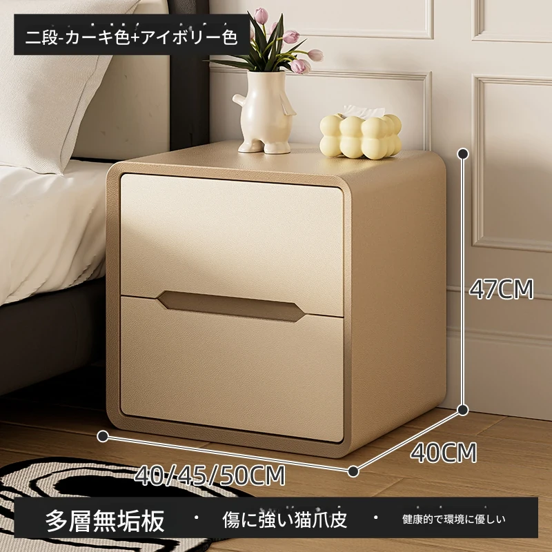 二段引き出し-カーキ色+アイボリー(厚手多層無垢材フレーム+無垢材引き出し)