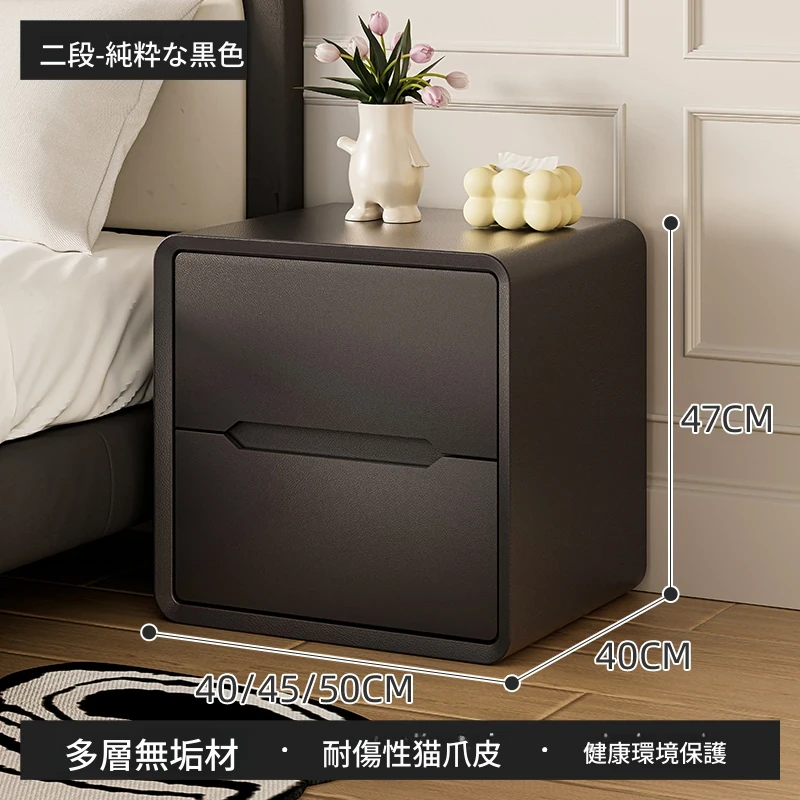 ブラックの無垢材ナイトテーブル - 高級感あふれるミニマルデザイン、2025年のトレンド!家庭用寝室にぴったりなクリエイティブ収納ボックス。あなたのインテリアを格上げするアイテムです!
