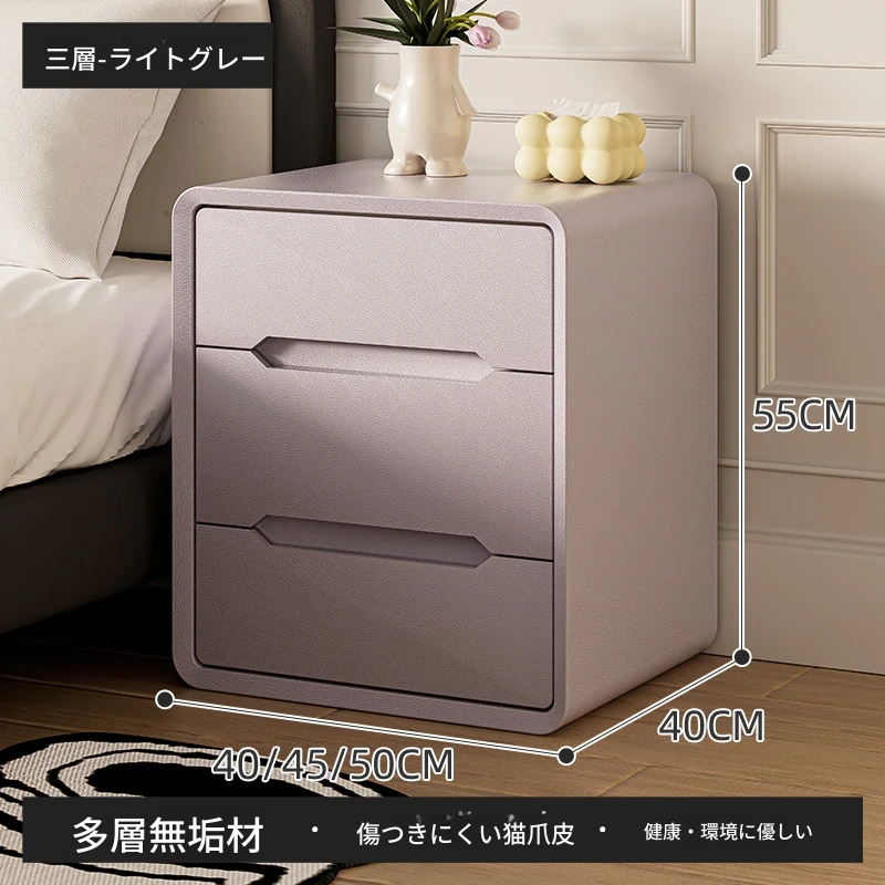 三段引き出し-ライトグレー(厚手多層無垢材フレーム+無垢材引き出し)