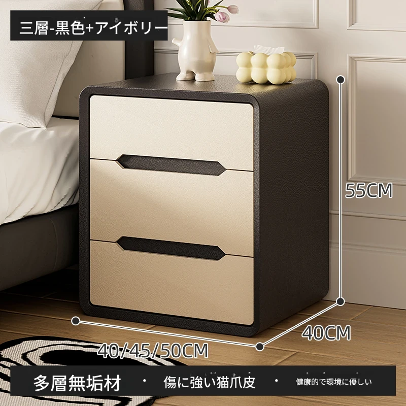 三段引き出し-黒色+アイボリー(厚手多層無垢材フレーム+無垢材引き出し)