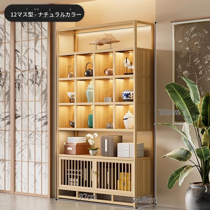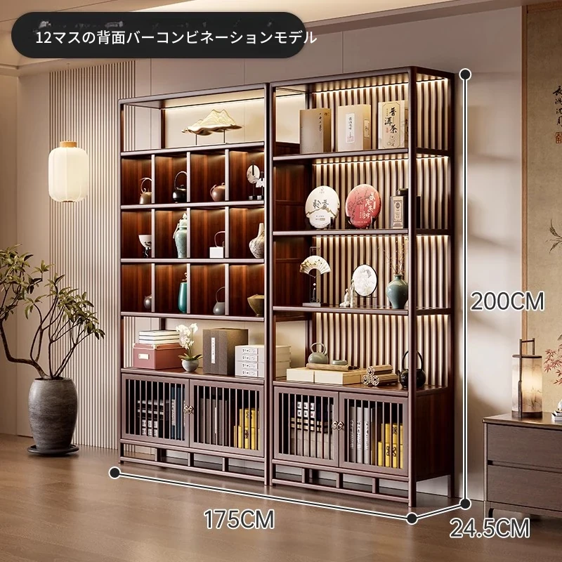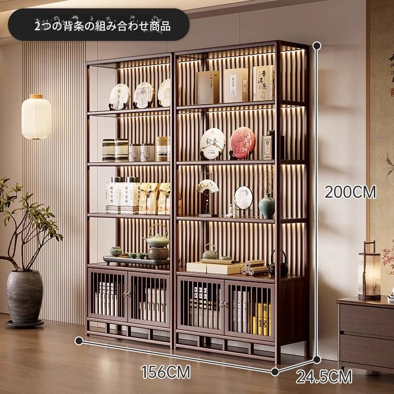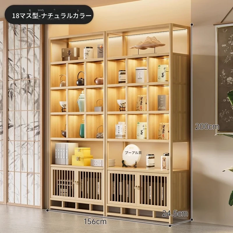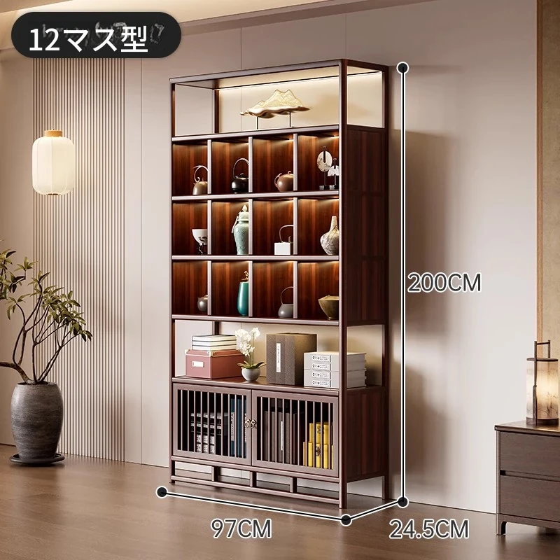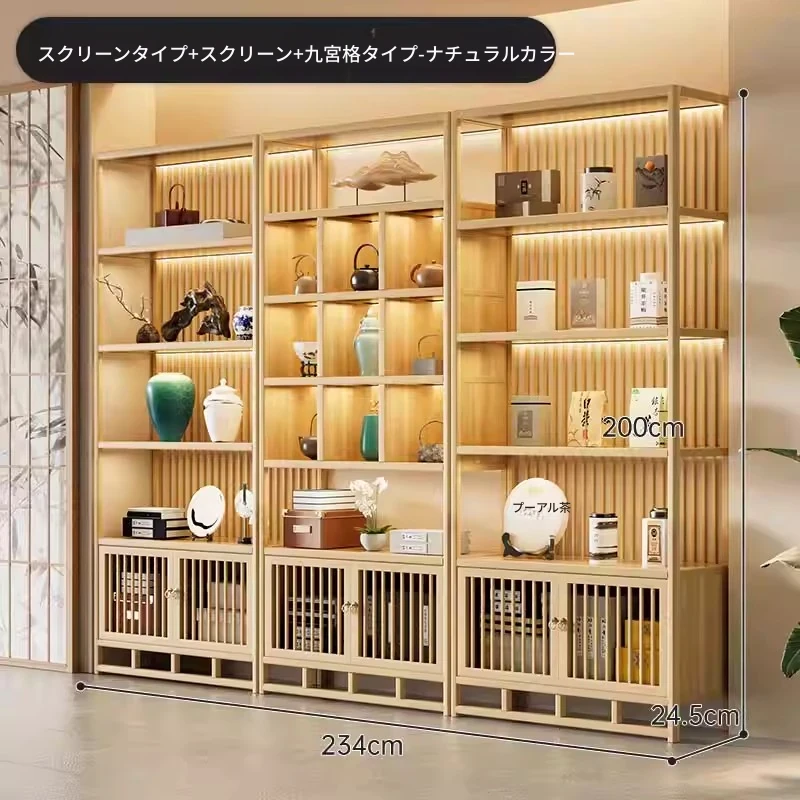 新中式デザインの博古架ティーキャビネット - 茶室にぴったりの収納ラック!美しい茶葉や茶具を魅力的にディスプレイする多宝阁スタイルの展示棚で、心地よいティータイムを演出します。