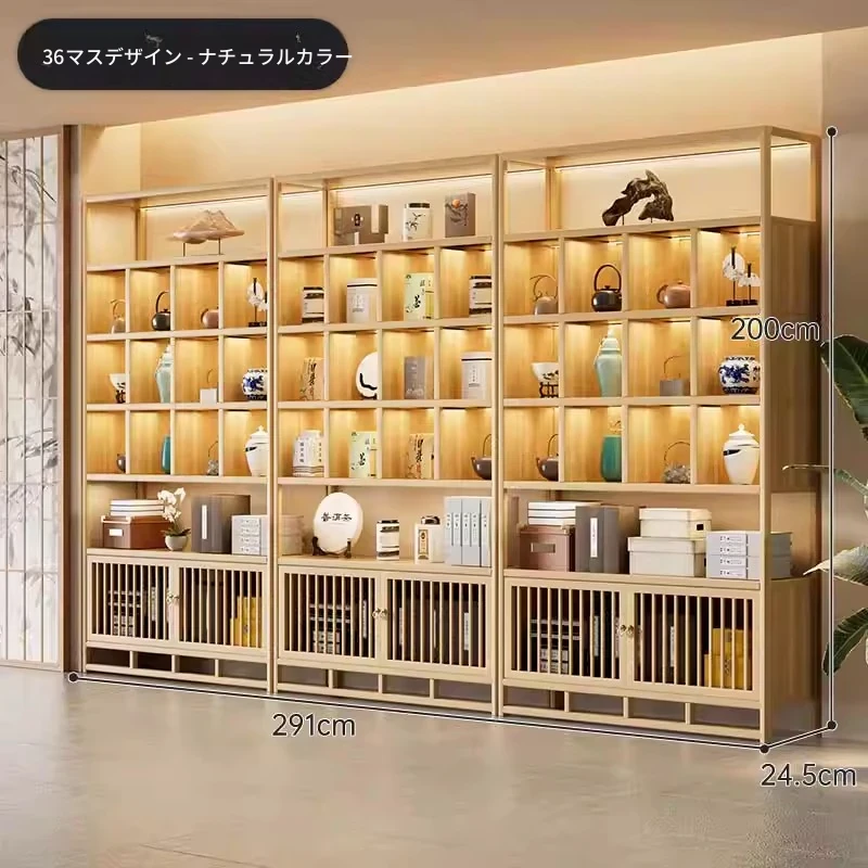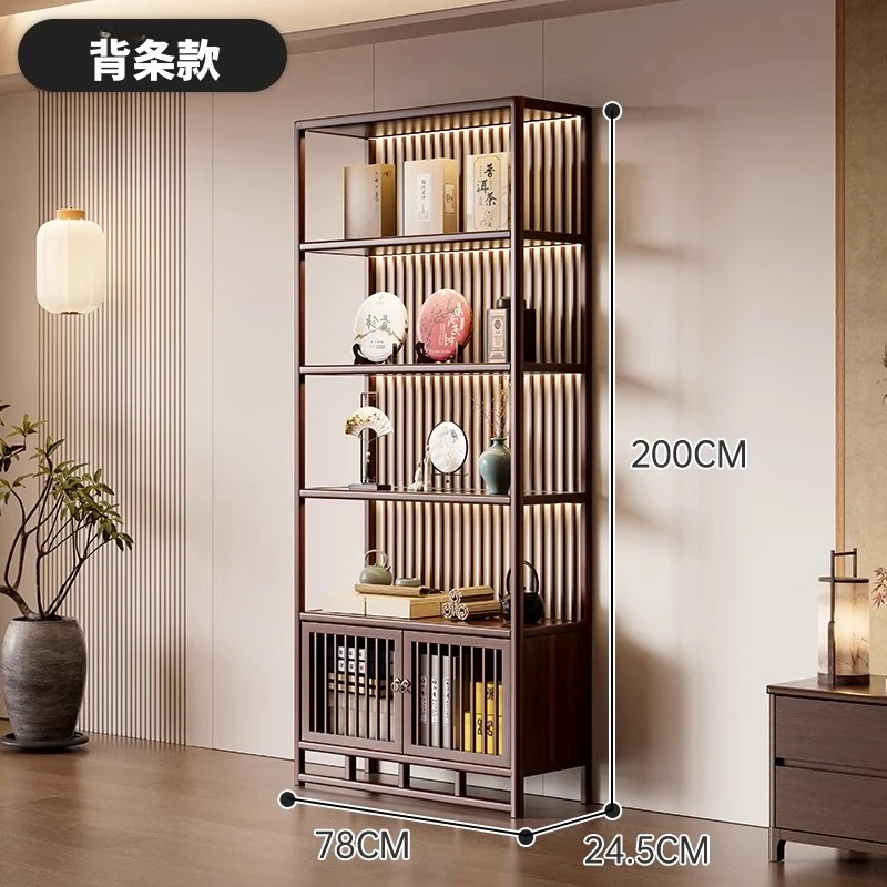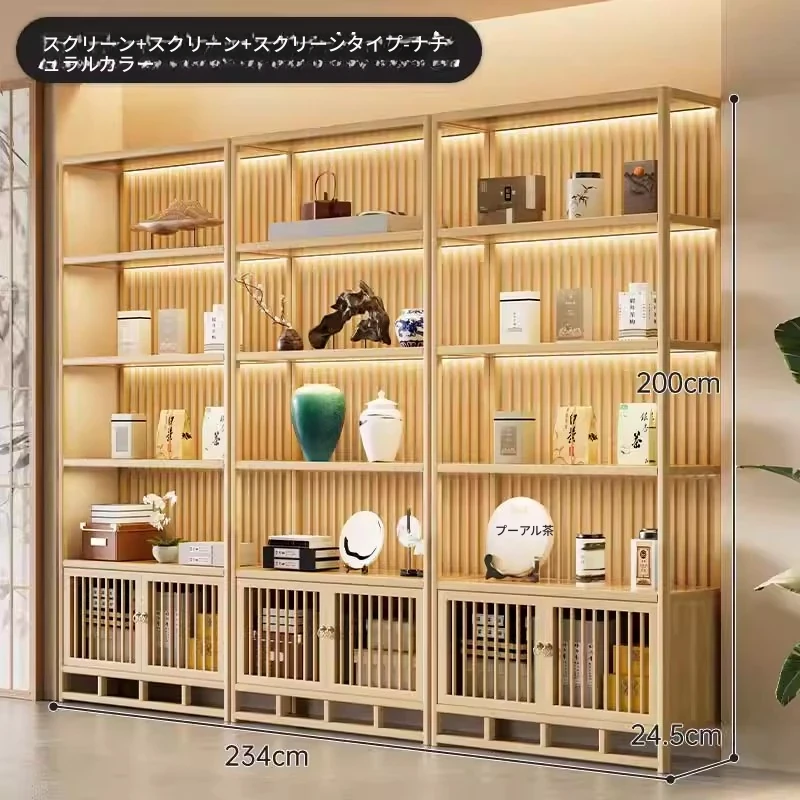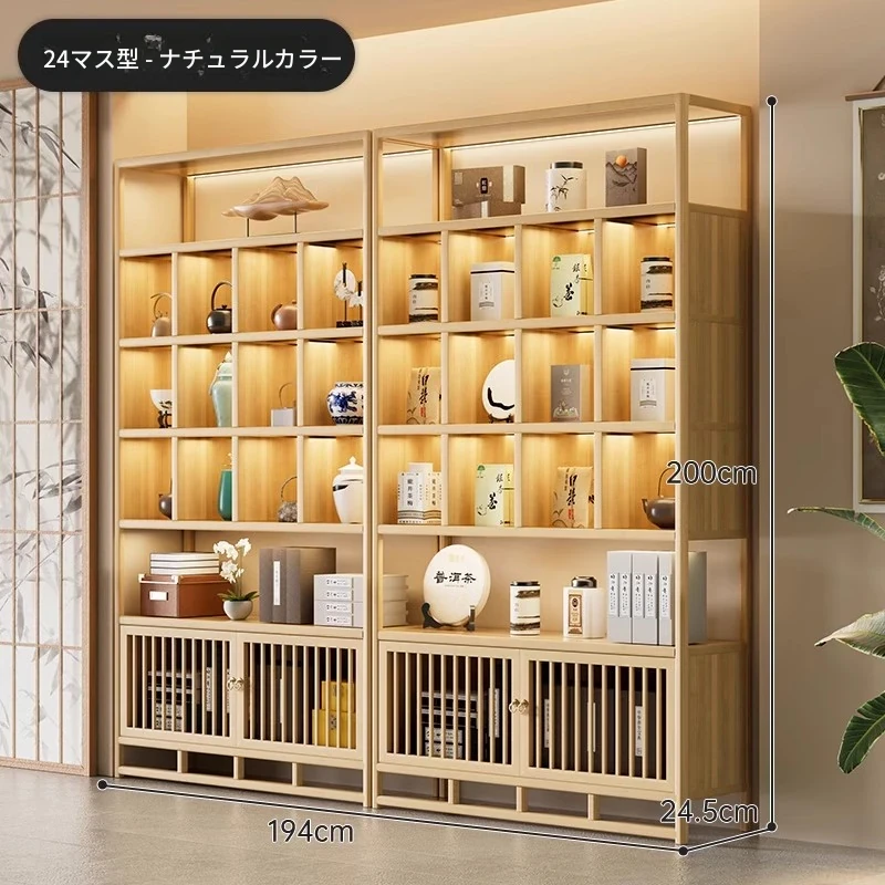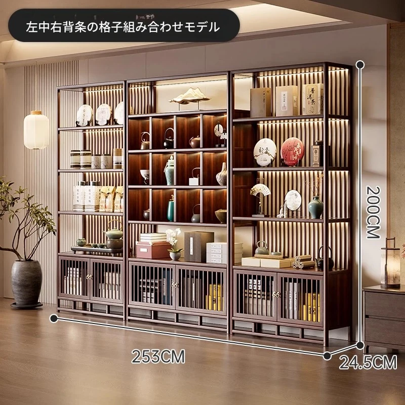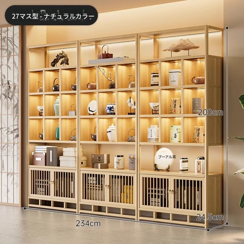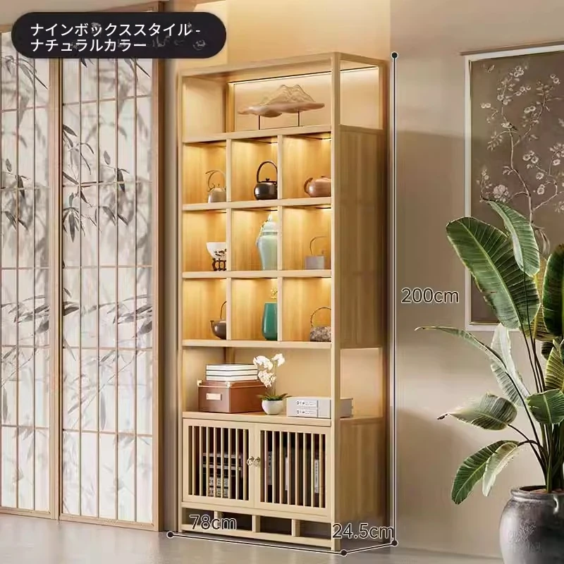 新中式デザインの博古架ティーキャビネット - 茶室にぴったりの収納ラック!美しい茶葉や茶具を魅力的にディスプレイする多宝阁スタイルの展示棚で、心地よいティータイムを演出します。