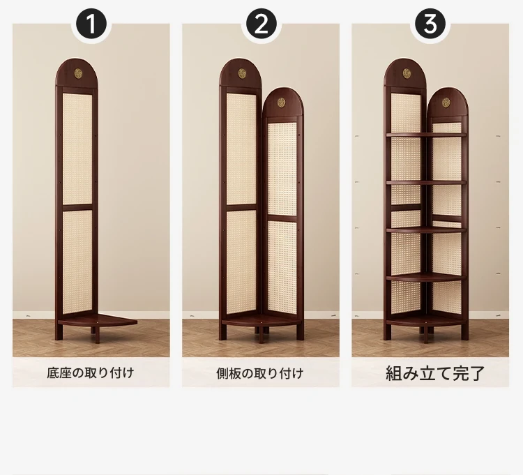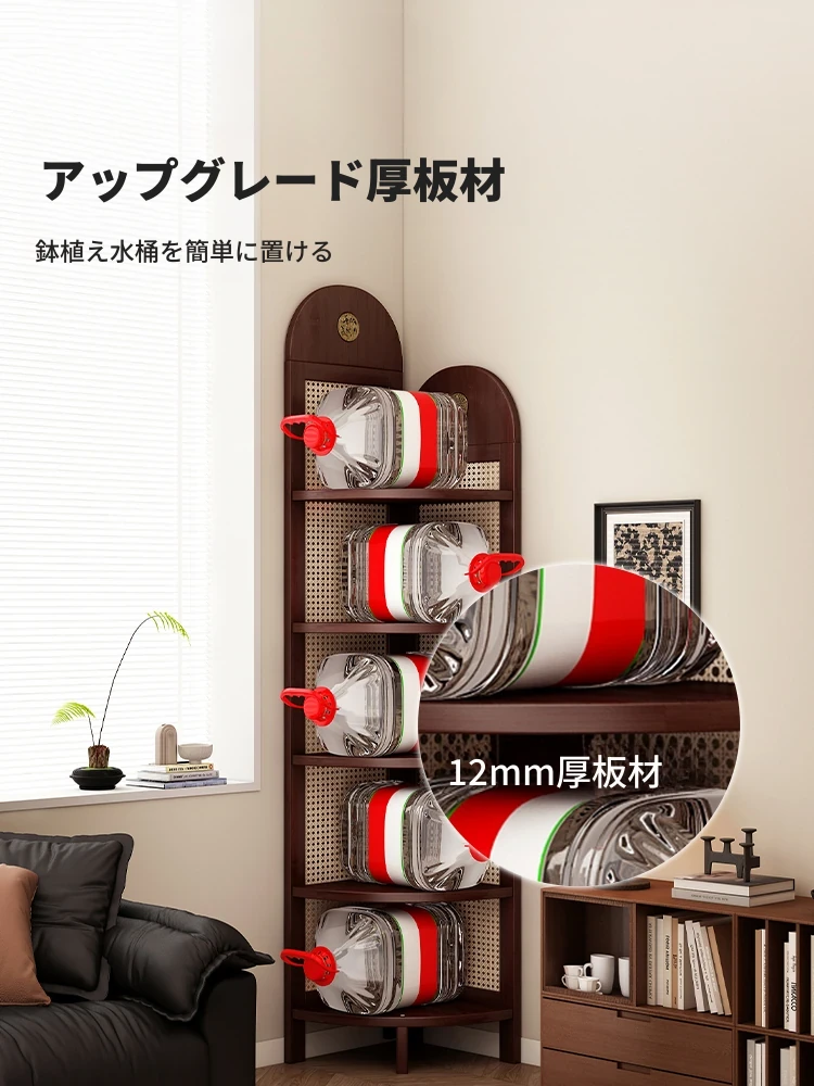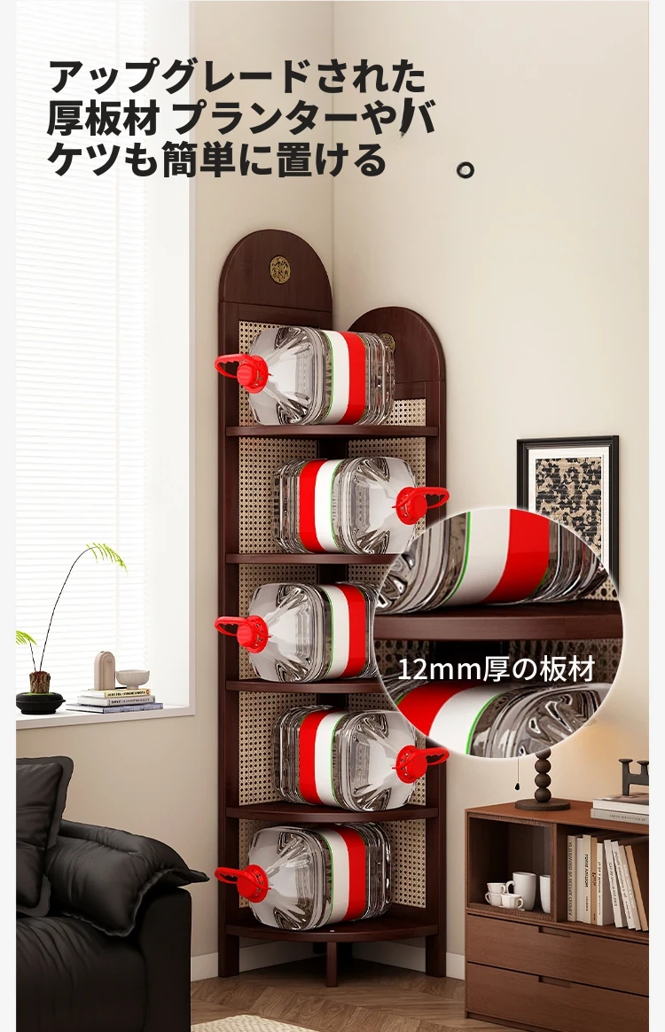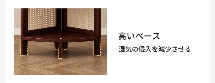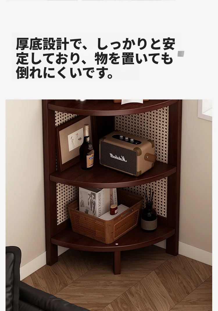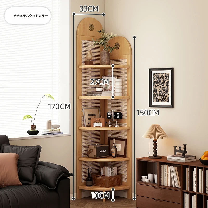 角度を活かしたスタイリッシュな収納!高級感溢れるラタン編みの角置き棚&書架、壁にぴったりフィットする90度コーナーキャビネット。お部屋をオシャレに演出し、空間を有効活用!