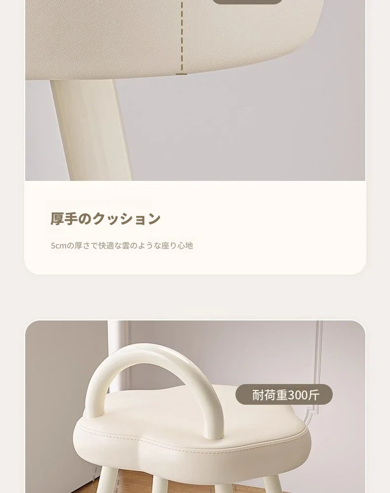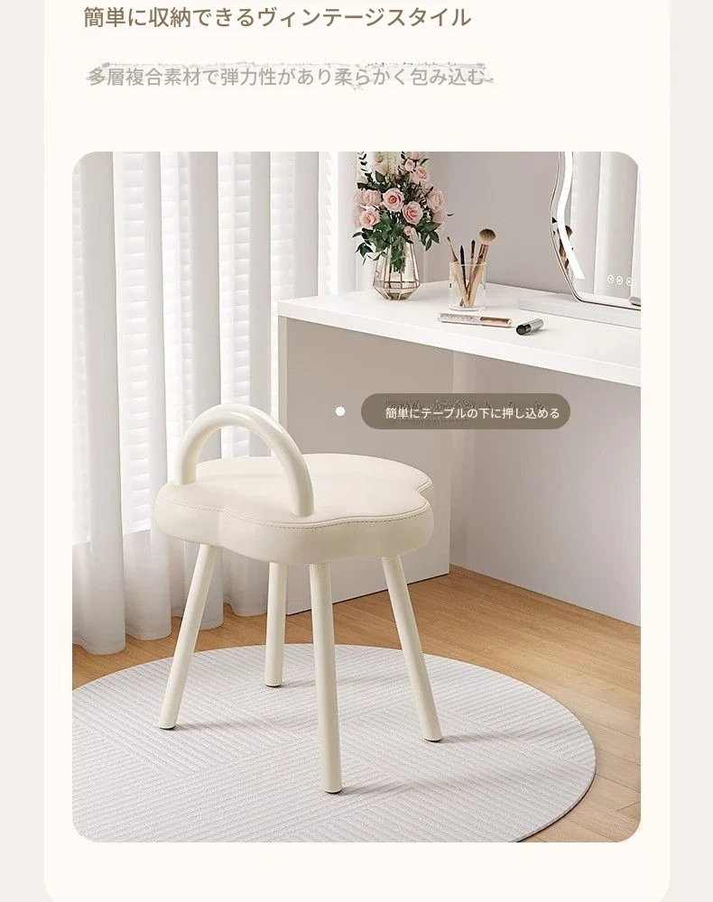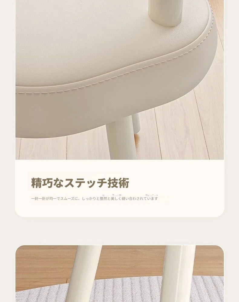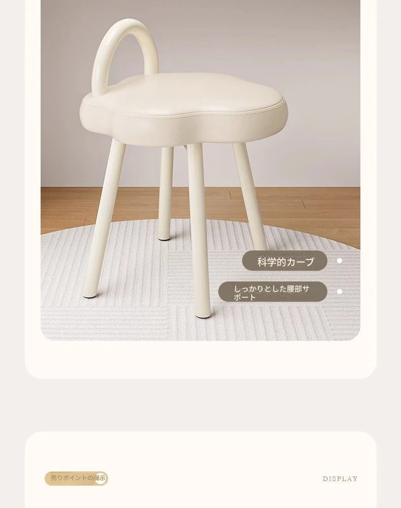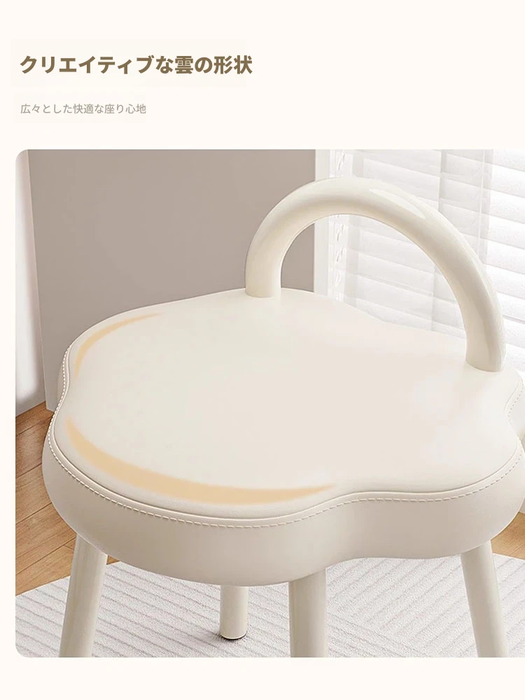 シンプルで高級感あふれるメイク台用スツール。クリームカラーのファッション感溢れる椅子。女の子のためのワードローブにぴったりな雲のようなデザイン。快適さとスタイルを兼ね備えた一品!