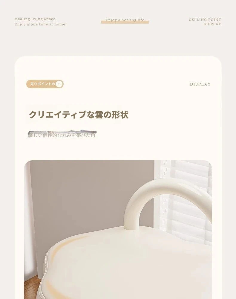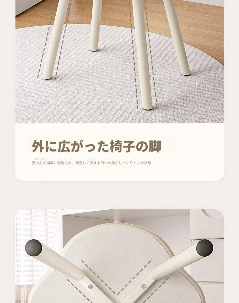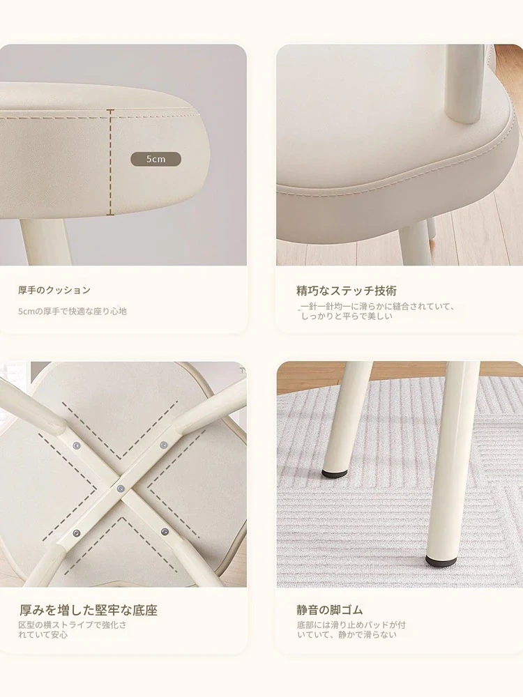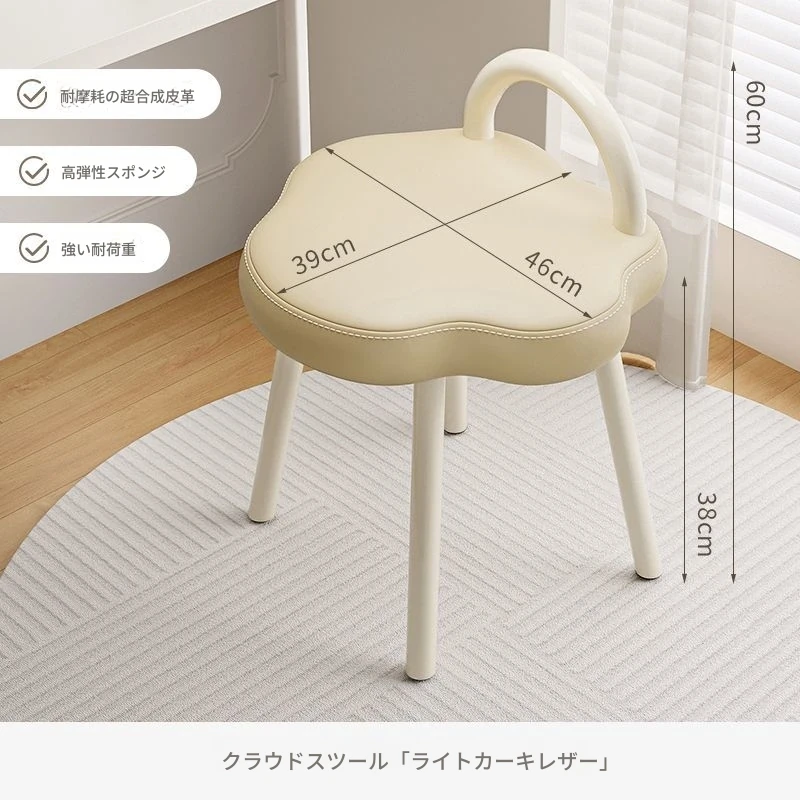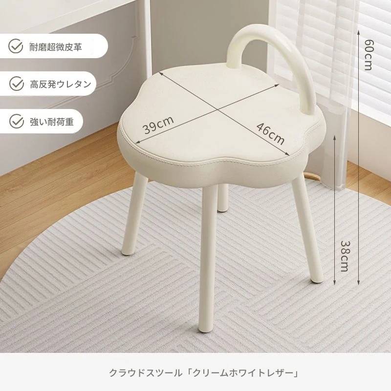 シンプルで高級感あふれるメイク台用スツール。クリームカラーのファッション感溢れる椅子。女の子のためのワードローブにぴったりな雲のようなデザイン。快適さとスタイルを兼ね備えた一品!